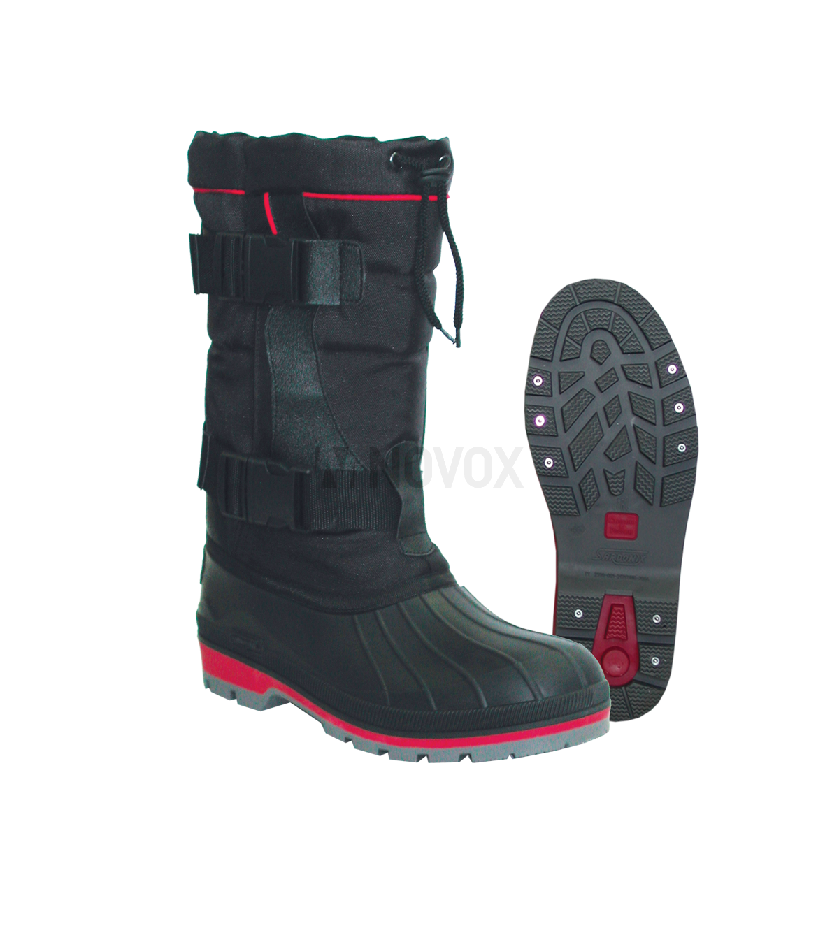 Бахилы мужские «Орлан» предназначены для длительного пребывания на морозе. Выполнены в комбинации: нижняя часть - галоша из материала ТЭП, надставка из водоотталкивающего материала на подкладке (поролон, спанбонд). Шнуровка плотно фиксирует голенище по ноге. Подошва с глубоким протектором прошипована стальными шипами. Метод крепления борто-прошивной. Комплектуется вкладным чулком из дублированного материала - фольгированного нетканого полотна и искусственного меха с добавлением натуральных волокон.
