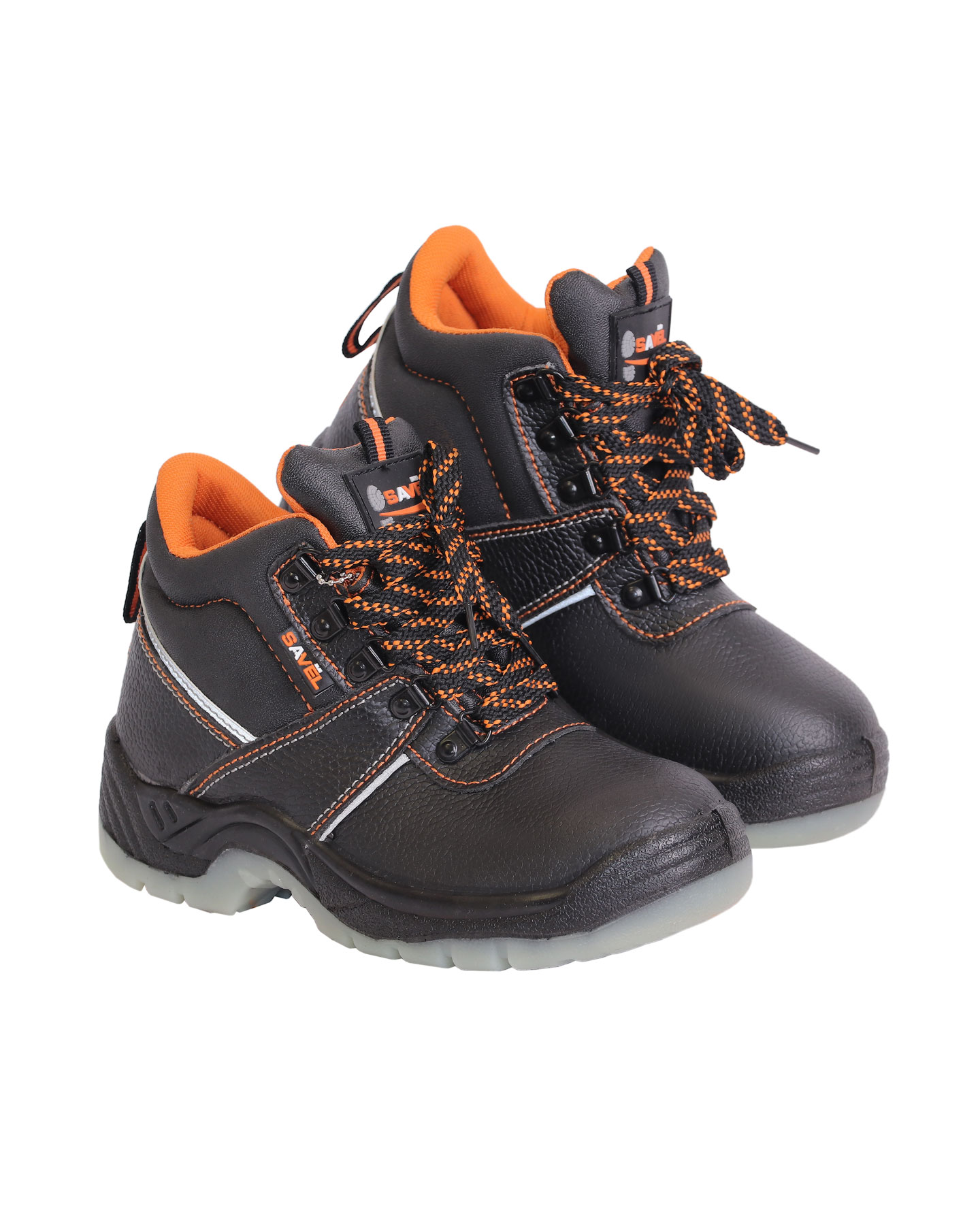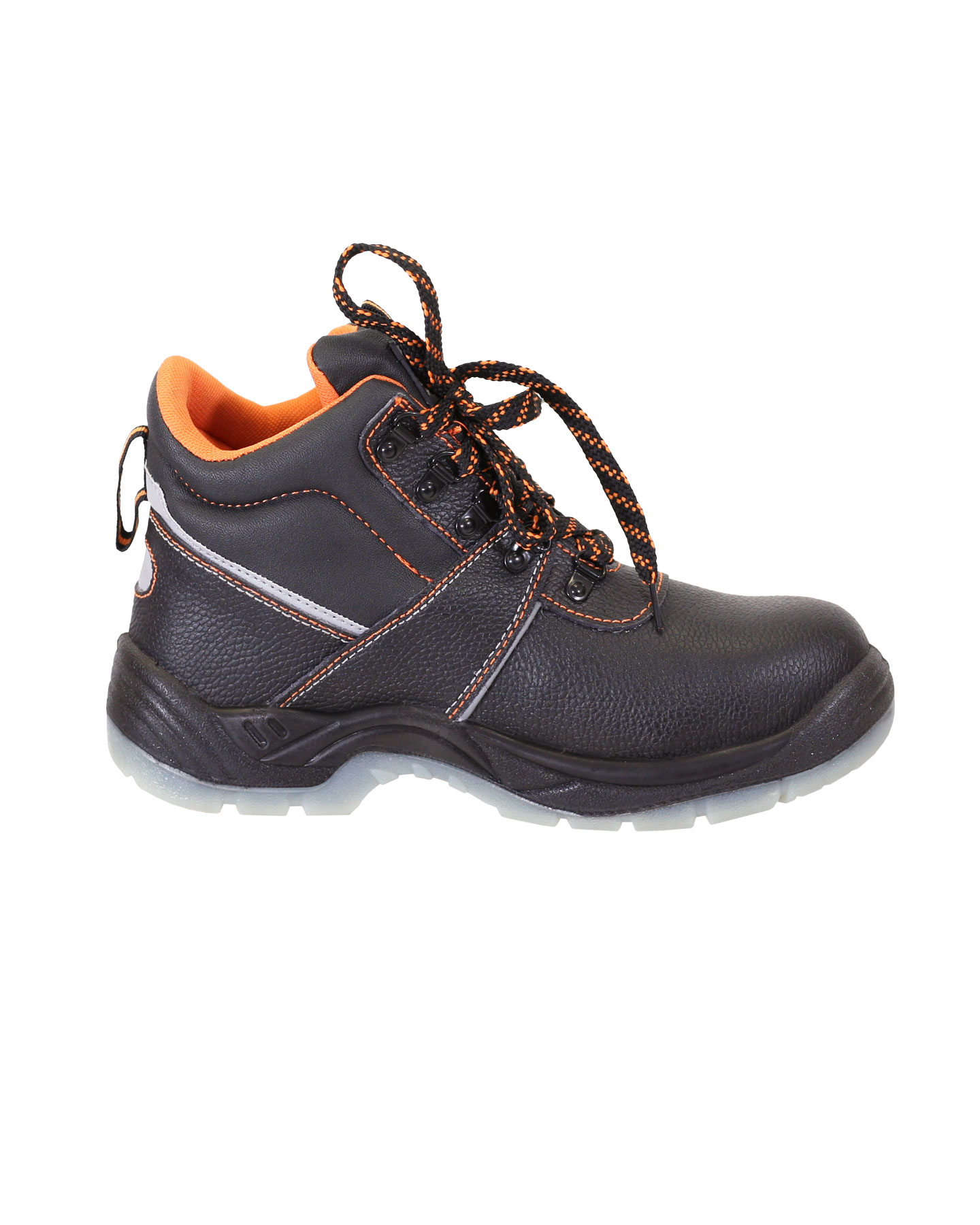 Верх ботинка имеет контрастные отделочно-скрепляющие строчки оранжевого цвета, как и подкладка, а также световозвращающие вставки для лучшей видимости в тёмное время суток.