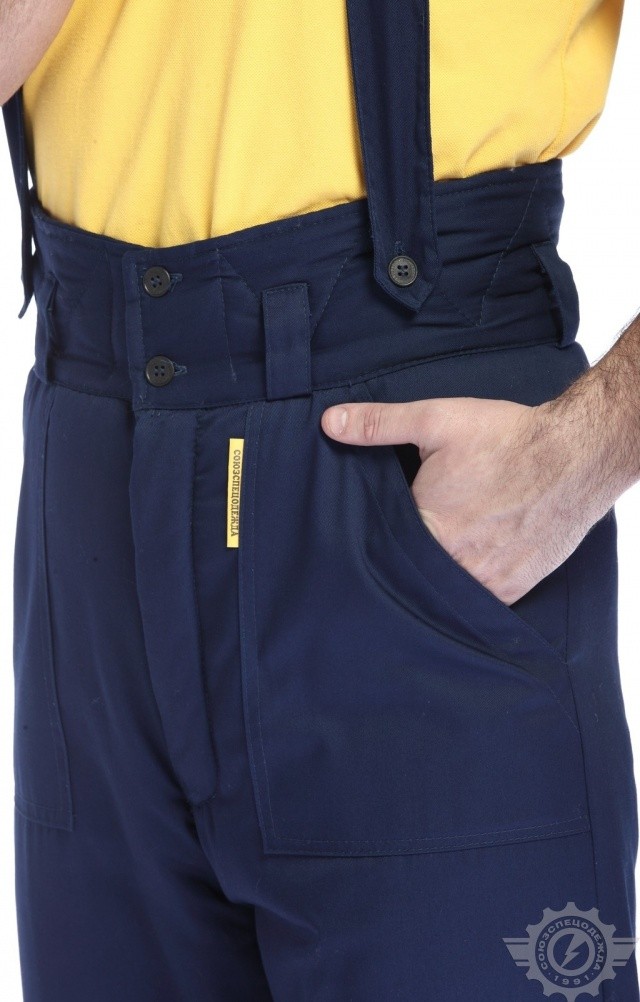 Утепленные мужские брюки “Эксперт” темно-синего цвета применяются в качестве рабочей одежды в осенне-зимний период.