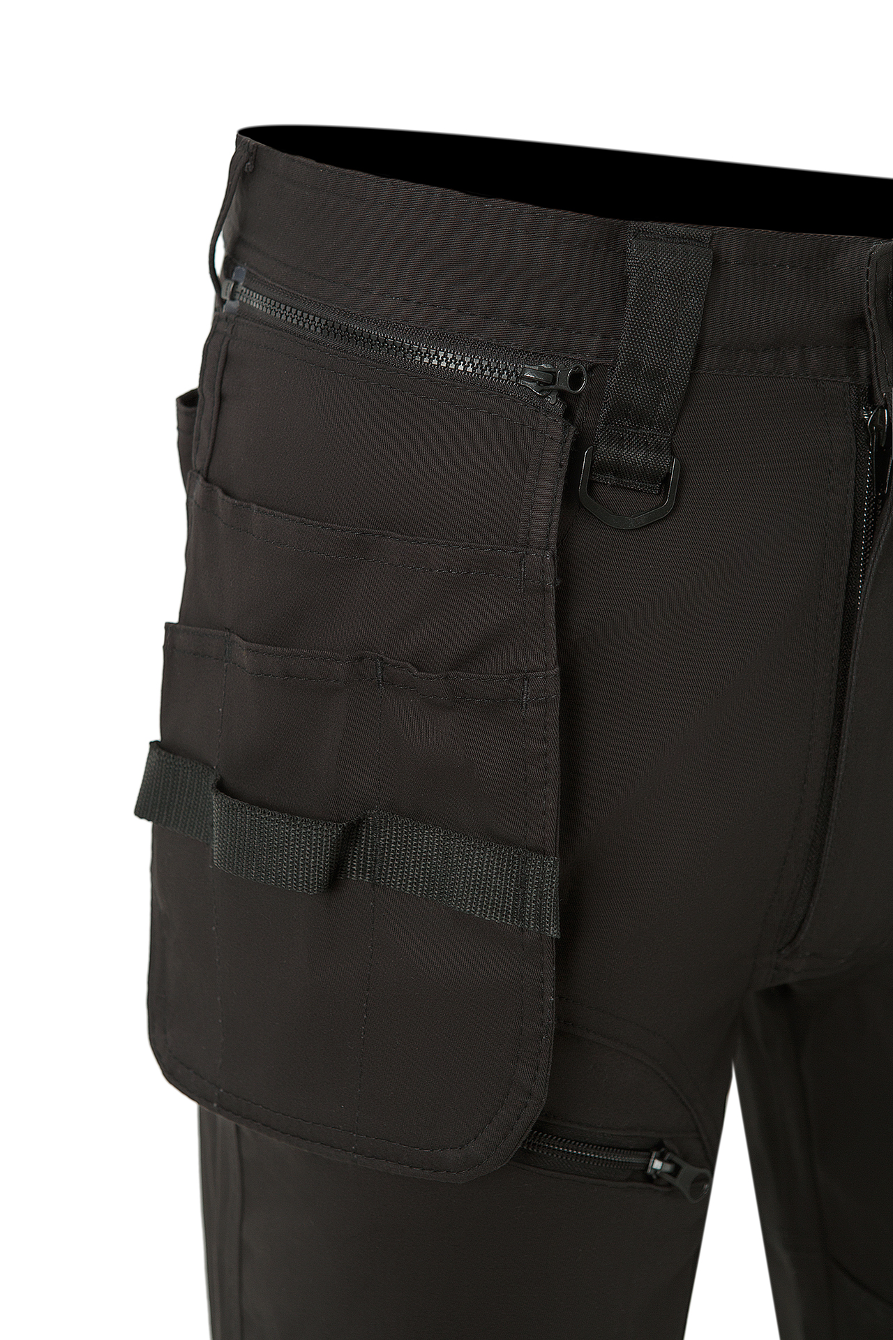 Множество функциональных карманов, в том числе 2 съемных передних кармана с отделениями для навешивания инструментов;