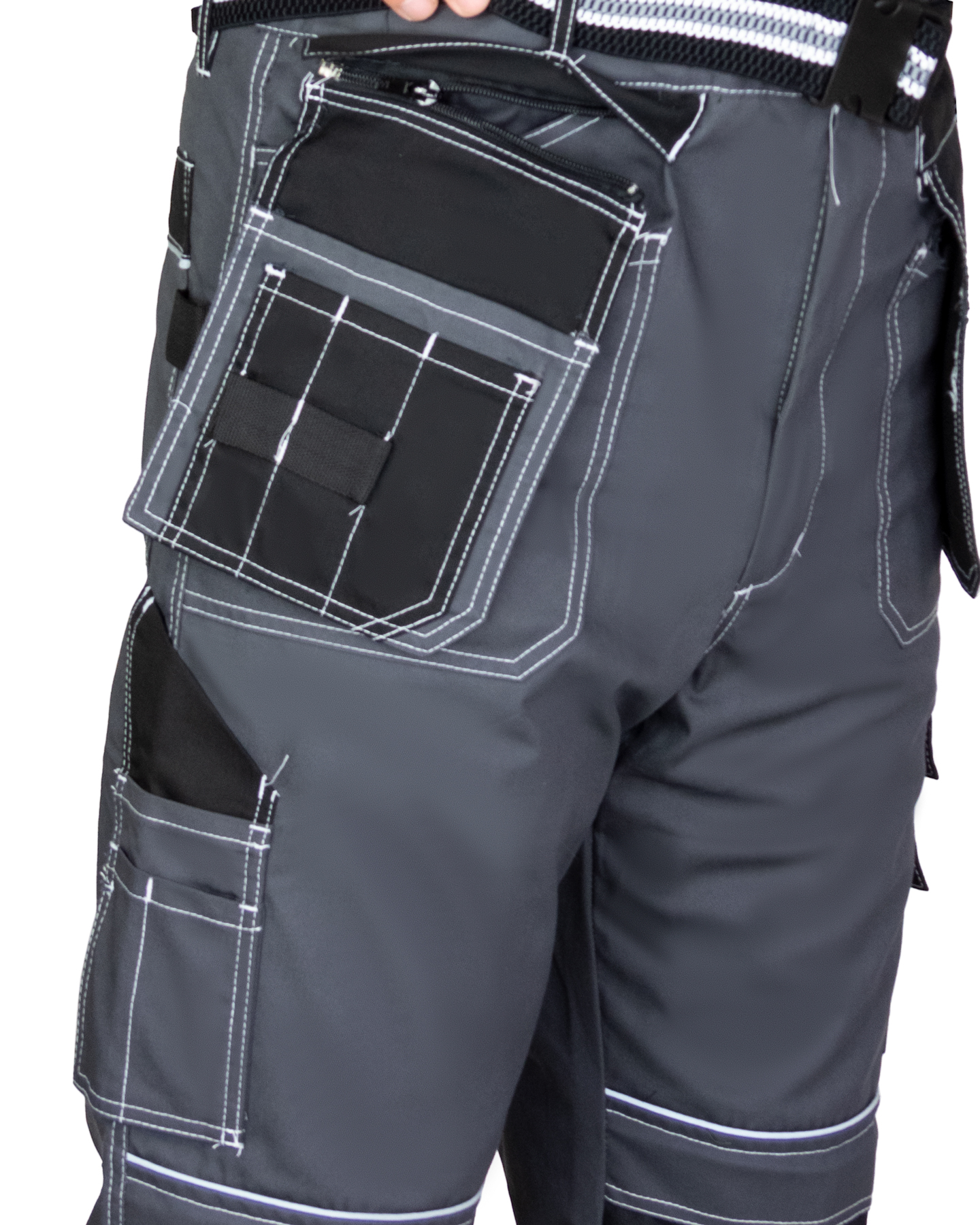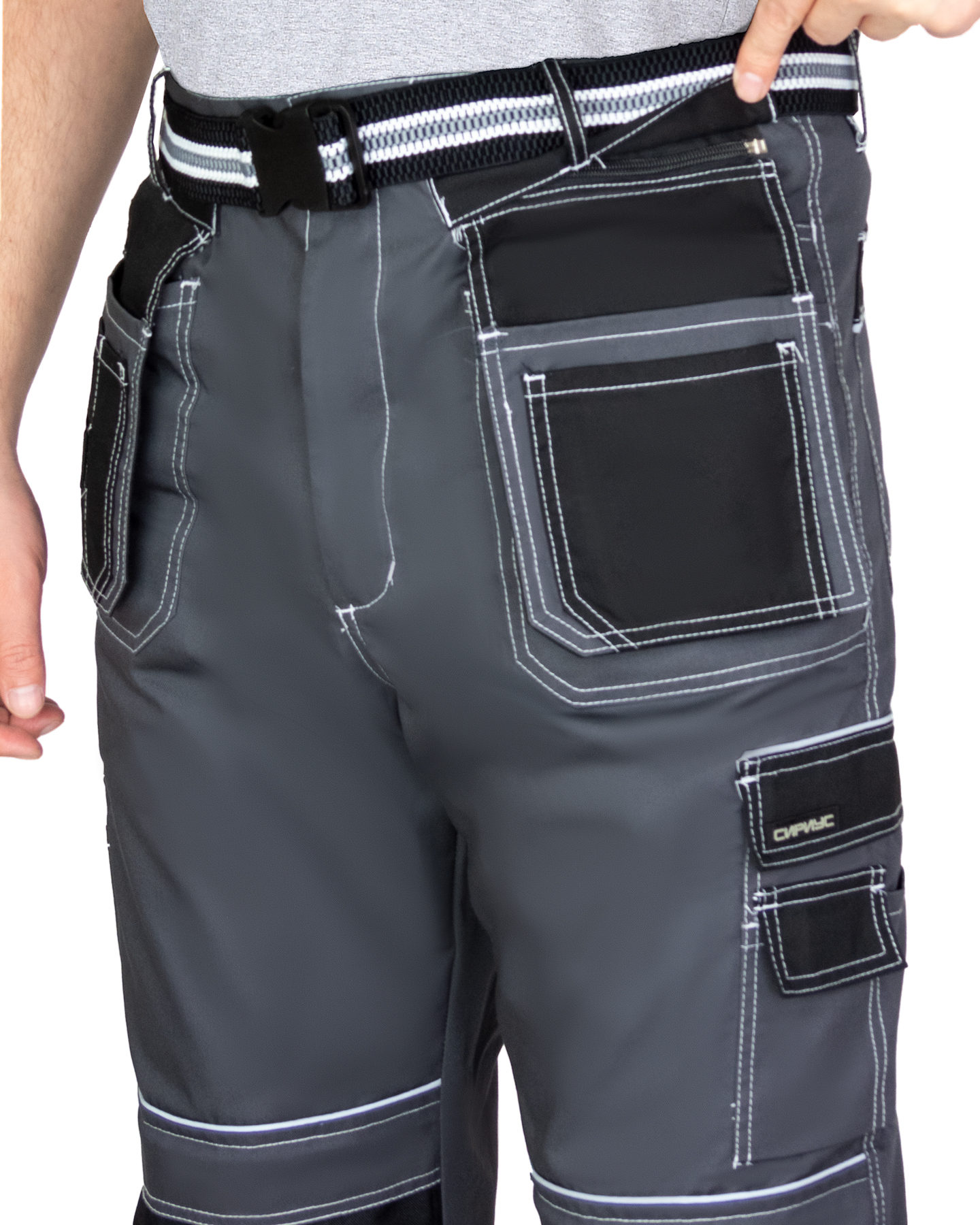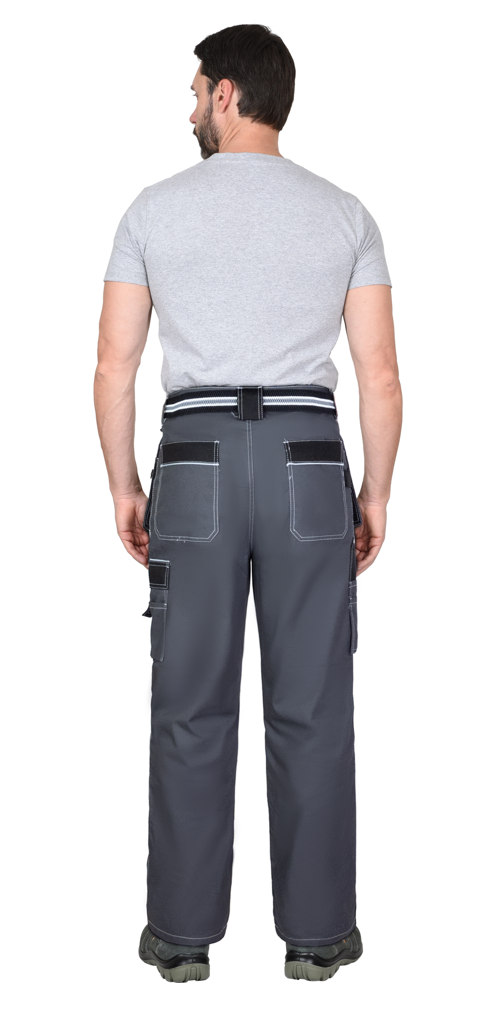 Брюки прямого силуэта, с отрезным поясом, с застежкой спереди на молнию (гульфик), с различными многофункциональными карманами, в области колен с усилительными накладками из устойчивой к истиранию, непромокаемой ткани, с возможностью размещения в них амортизационного вкладыша. Брюки комплектуются съёмным ремнём из эластичной тесьмы с пряжкой. В брюках предусмотрен кант СВ 3 мм для обозначения сигнальной видимости.