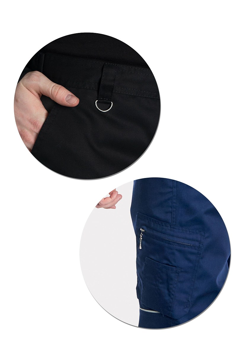 - Карманы: верхние боковые с наклонным входом; задние накладные фигурной формы; боковые с молнией и многофункциональными отделениями, с отлетным низом