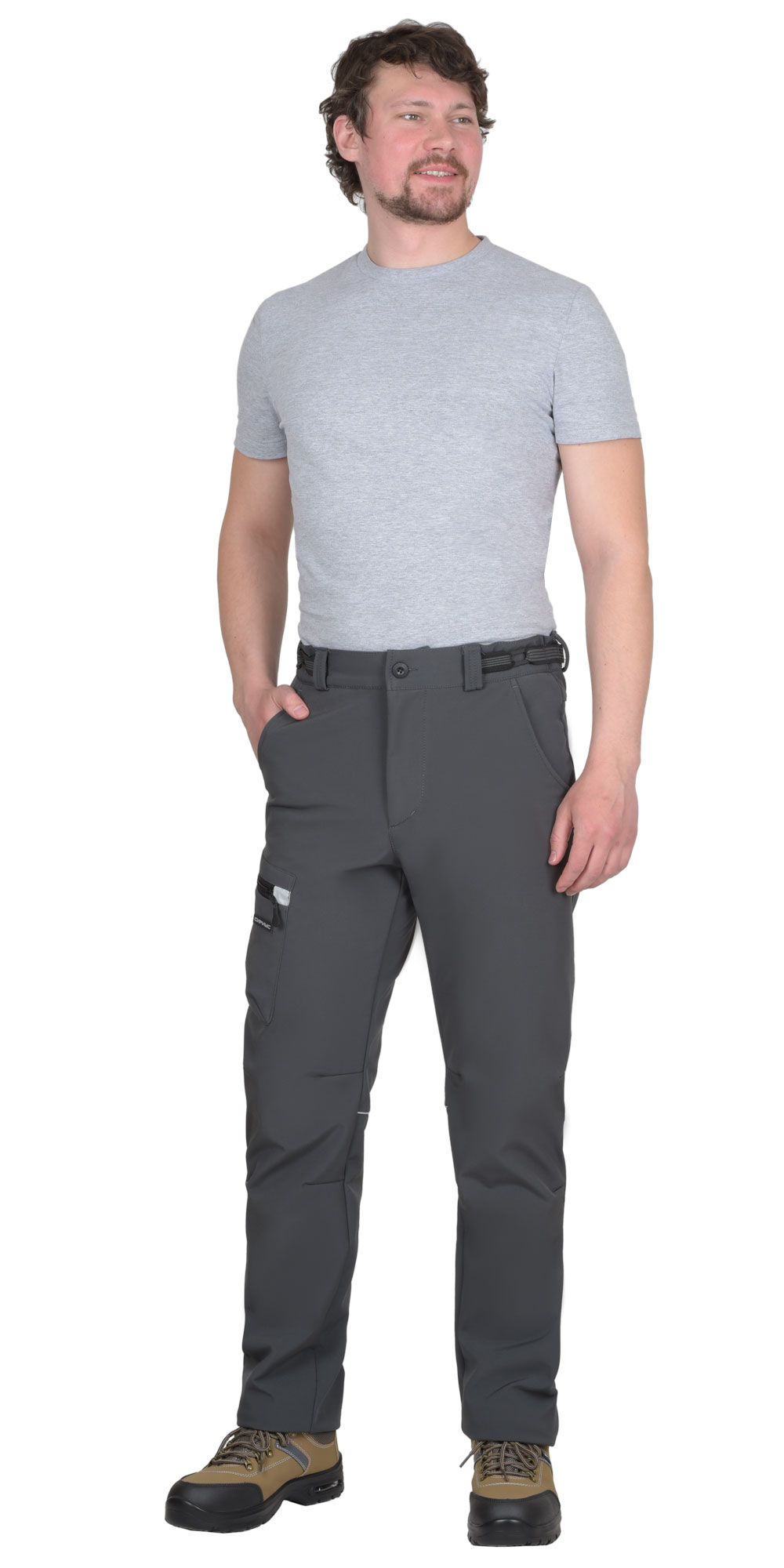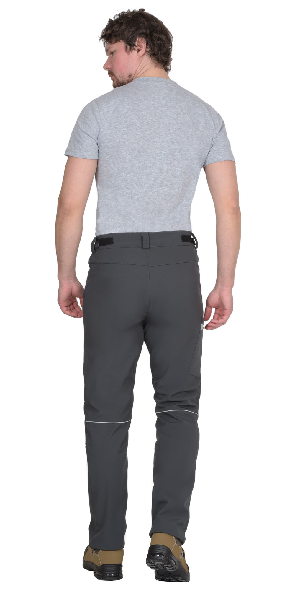 Брюки прямого кроя с застежкой гульфика на молнию, с отрезным поясом, с внутренними боковыми карманами и накладным карманом на правом боковом шве. В брюках предусмотрены светоотражающие элементы на накладном кармане и кант на задних половинках для обозначения сигнальной видимости в тёмное время суток.
