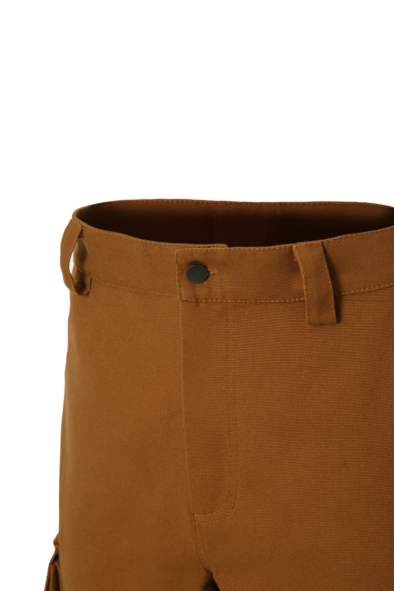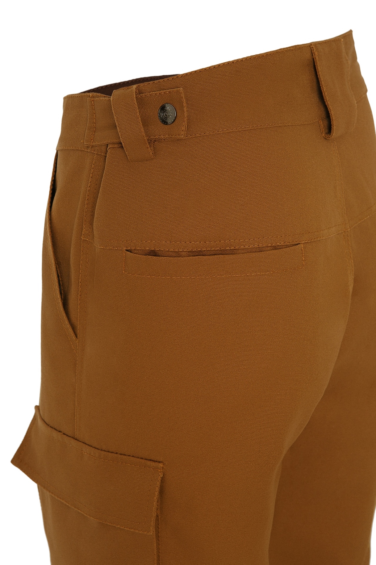 На верхней части брюк два кармана с наклонным входом.