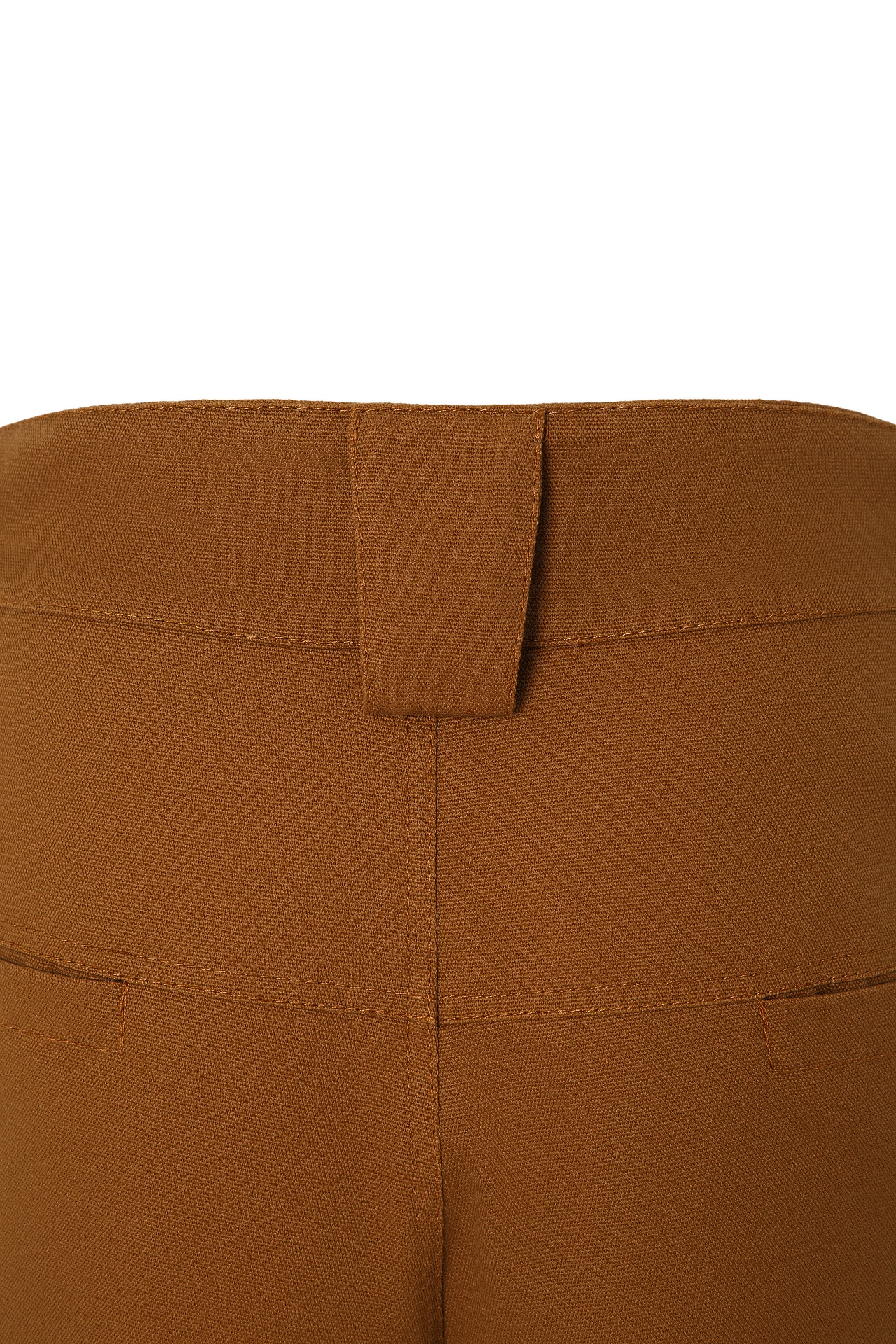 Сзади в верхней части брюк расположены два кармана с вертикальным входом.
