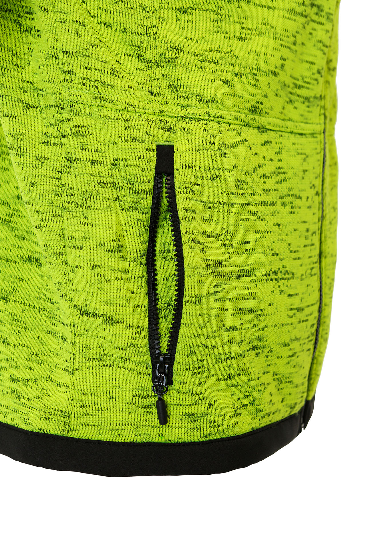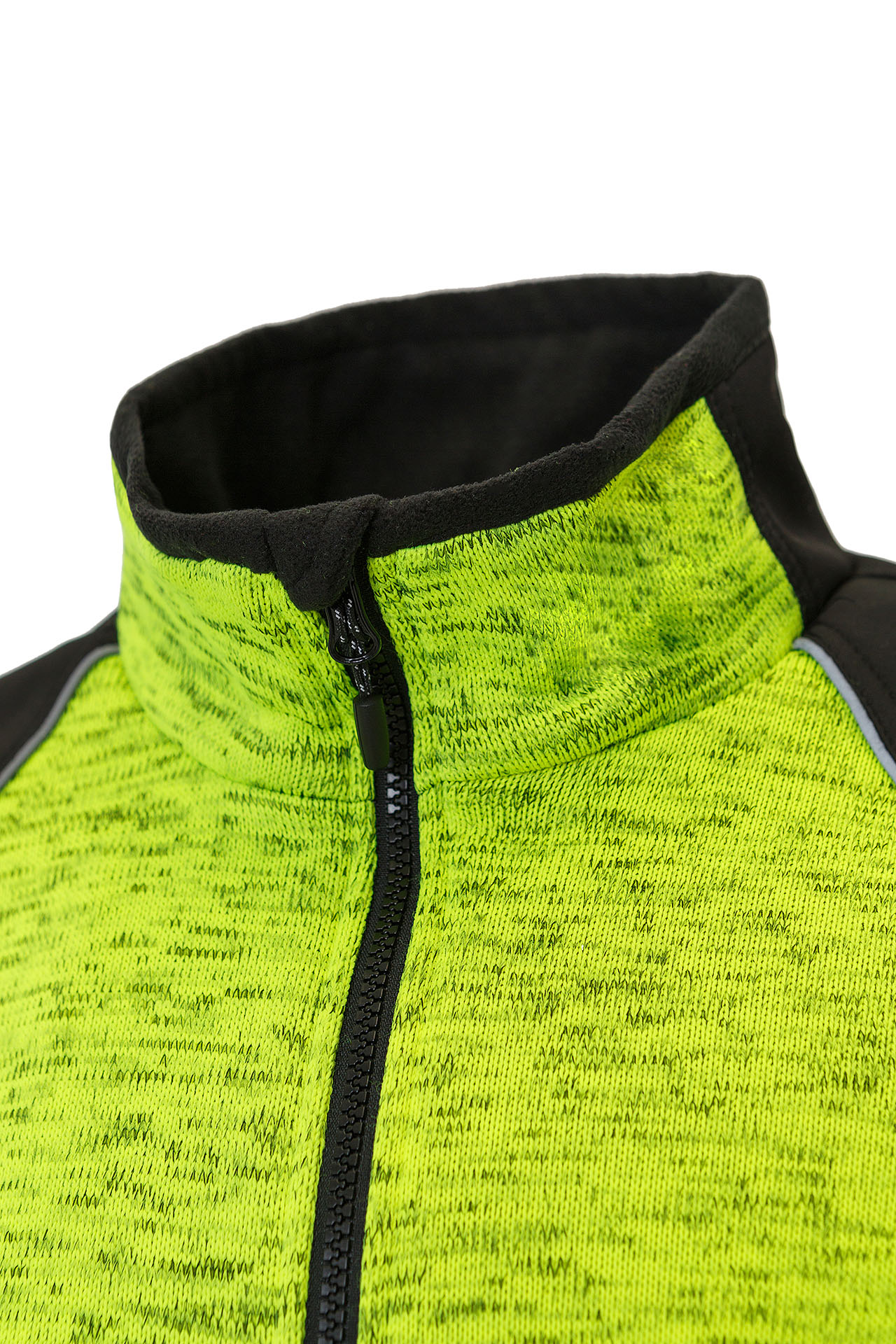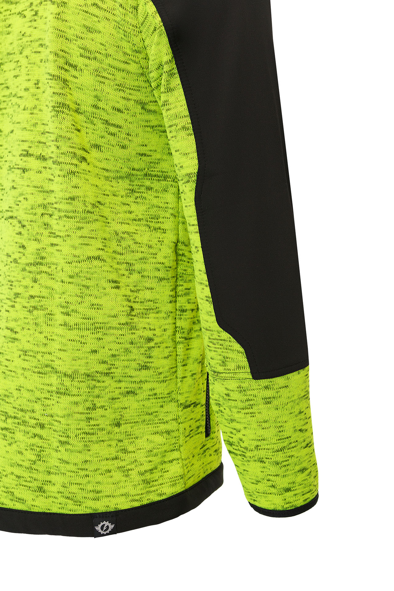 Усиленные части плеч и рукавов из ткани софтшелл контрастного цвета, защищают трикотаж от истирания.