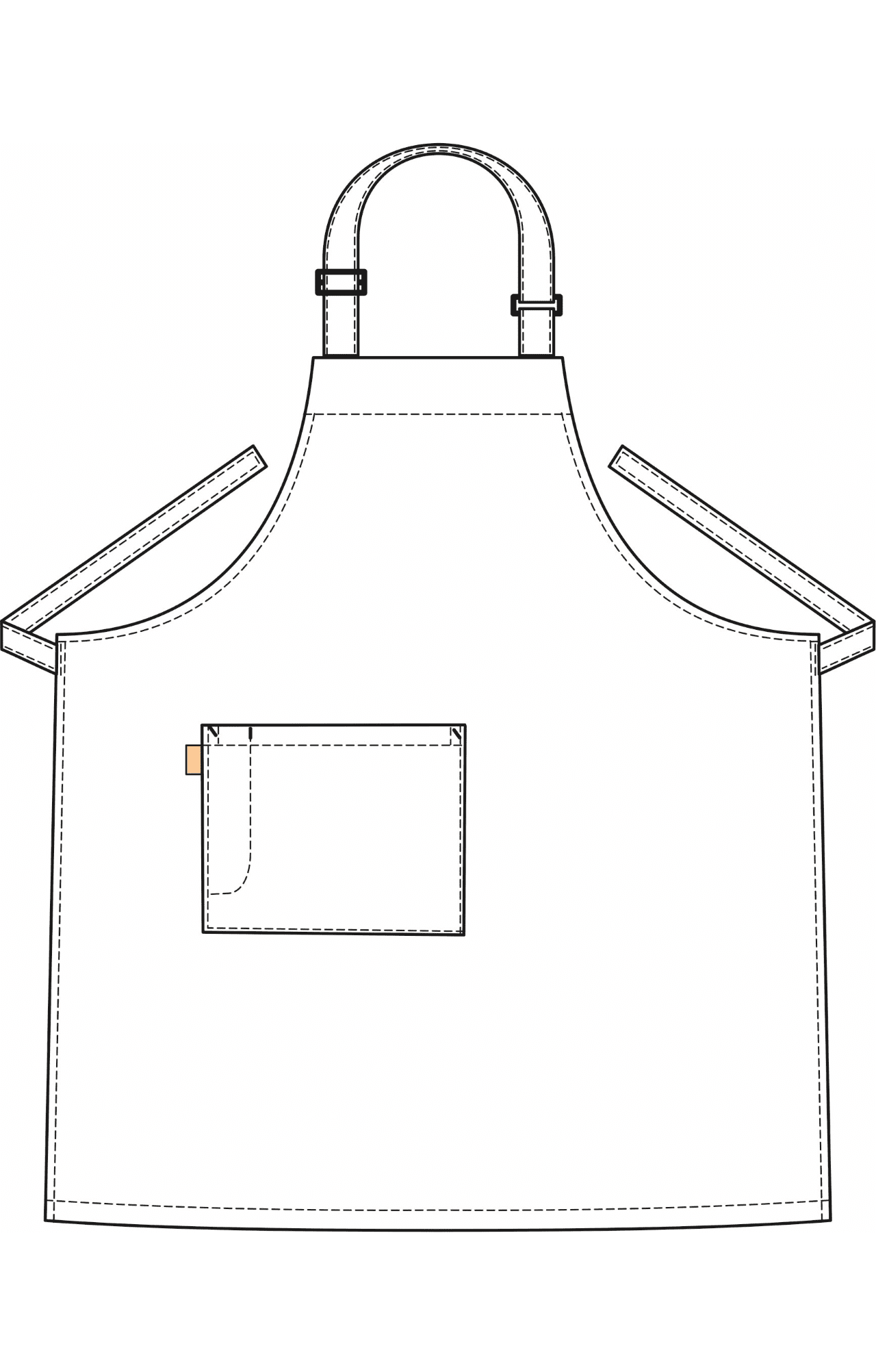 - Фартук с притачной шейной бретелью, длина которой регулируется с помощью двущелевой пряжки. Можно регулировать посадку фартука.