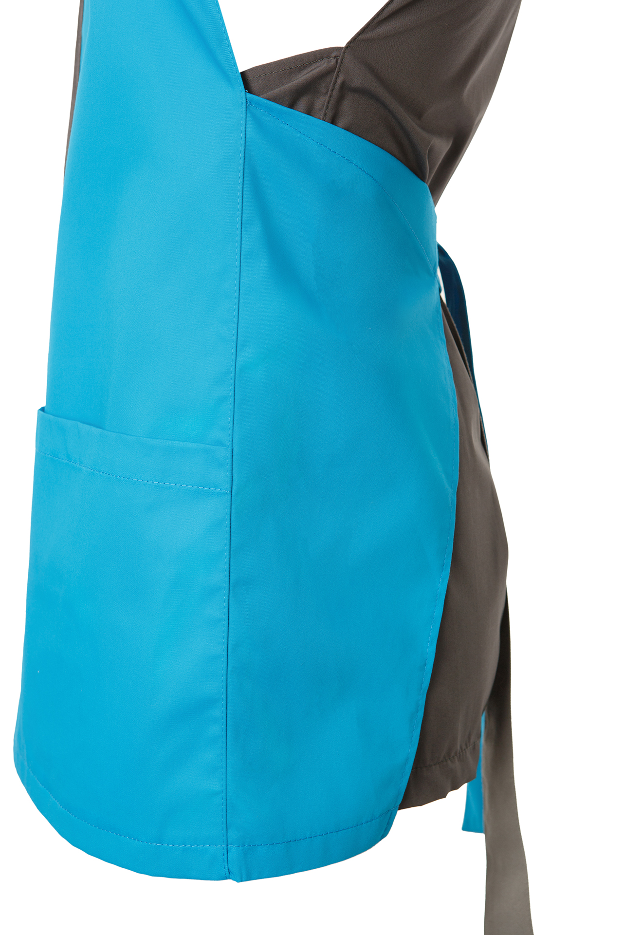 Фартук-накидка ВИТА скомбинирован из тканей двух плотностей. Передняя часть фартука изготовленная из более износостойкой плотной ткани с повышенным содержанием хлопка. Задняя часть фартука сшита из более легкой смесовой ткани завязывается на талии и не создает лишнего объема на животе. А- Силуэт, передняя часть в цветных фартуках скомбинирована из ярких контрастных блоков в основных цветах коллекции ВИТА. Одна из моделей выполнена из монохромных материалов с контрастной отстрочкой - для тех, кому нужна спокойная классика. Ворот и детали фартука обработаны бейкой. На левой части переда расположен накладной карман.