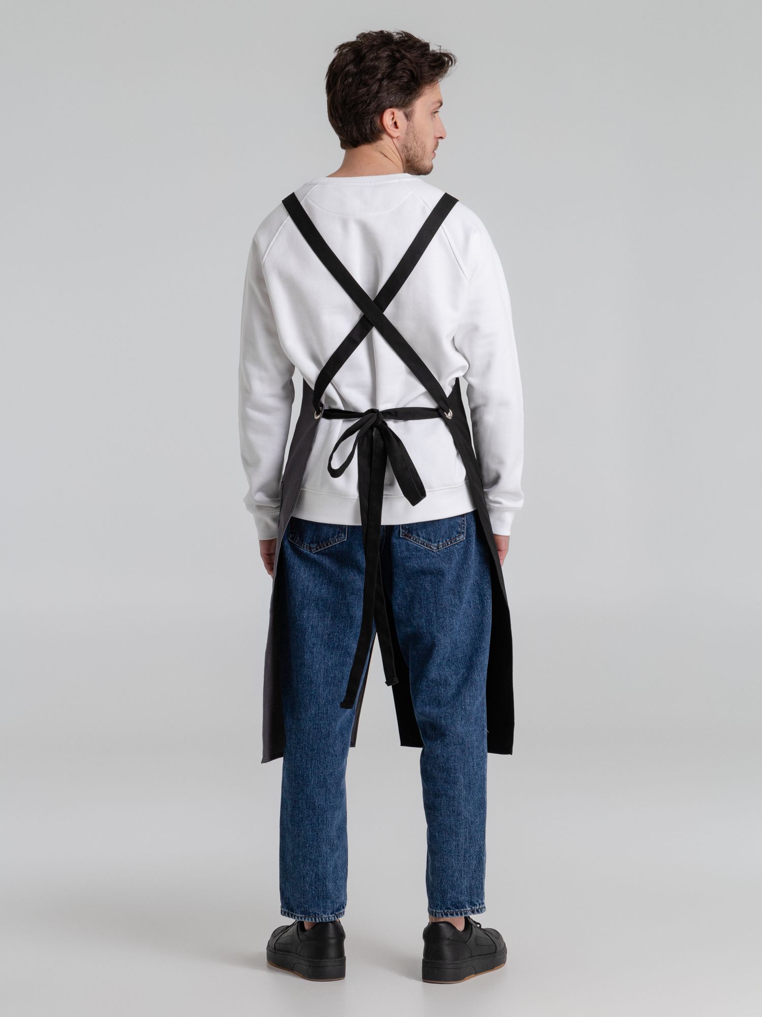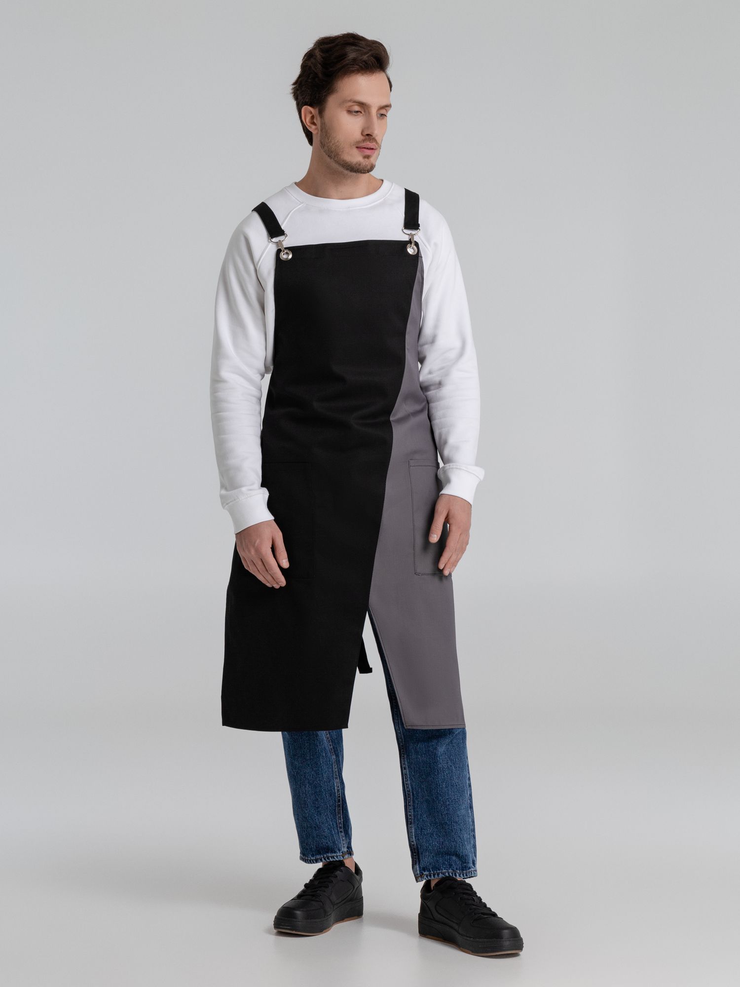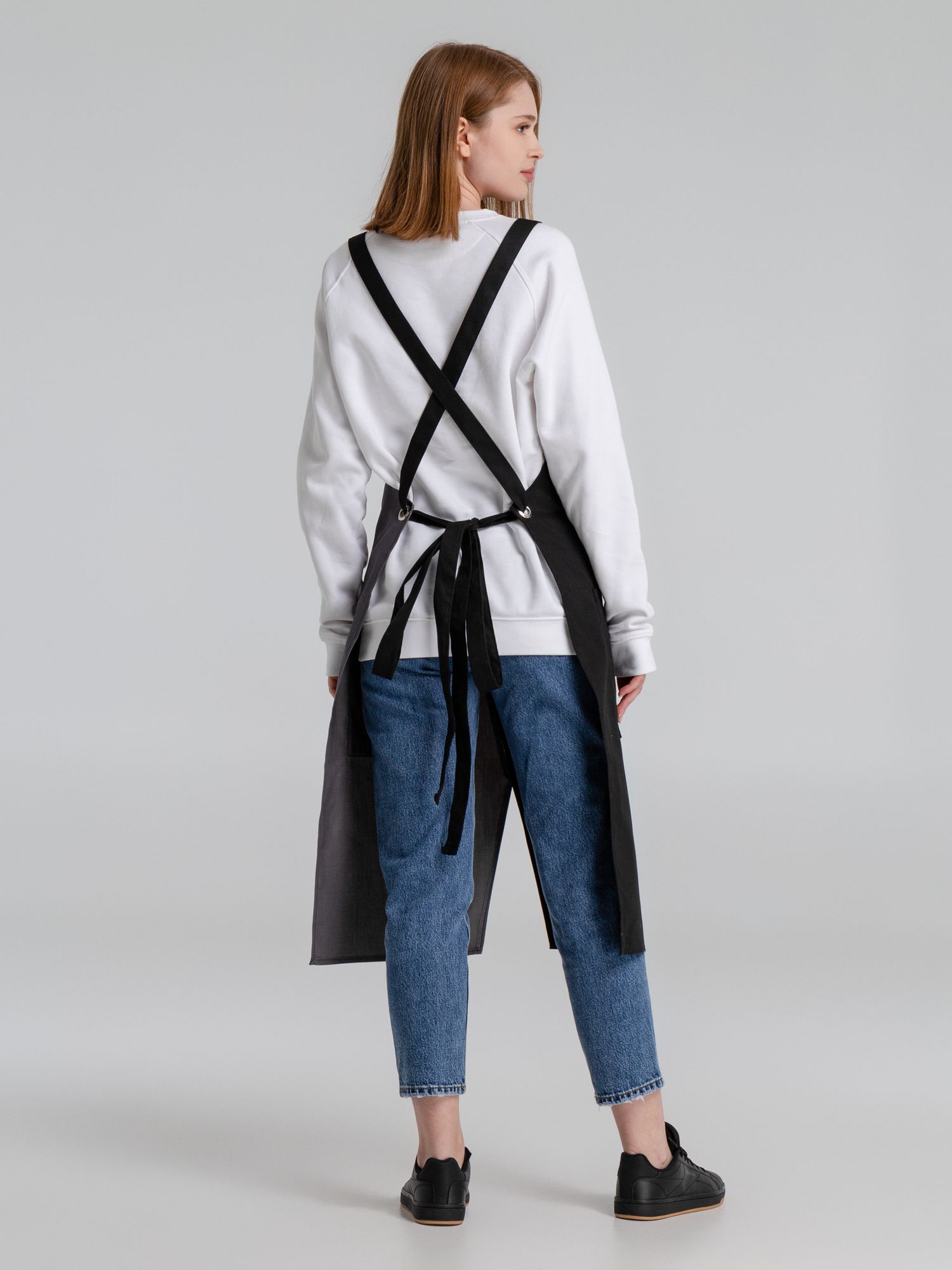 Фартук с длинными регулируемыми лямками и удобными карманами.