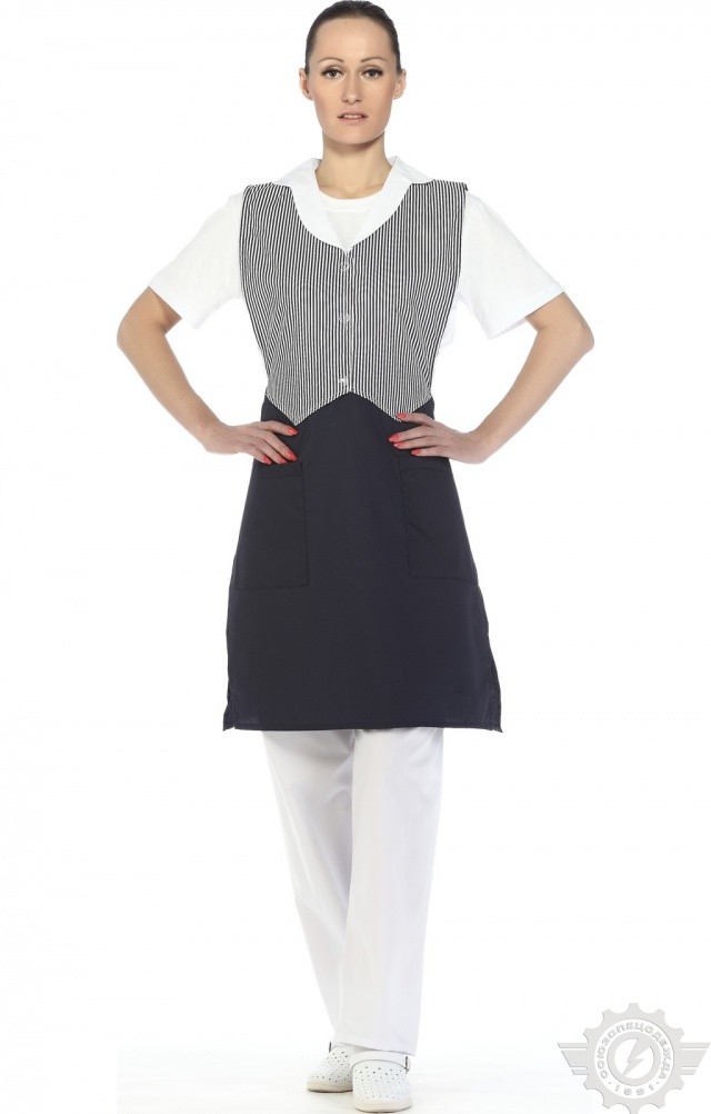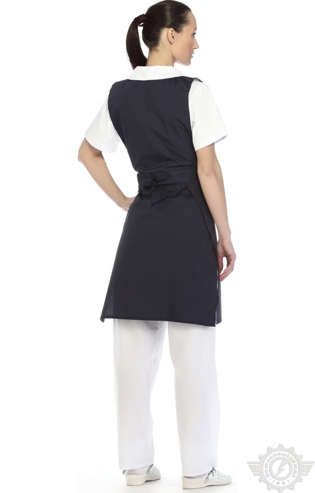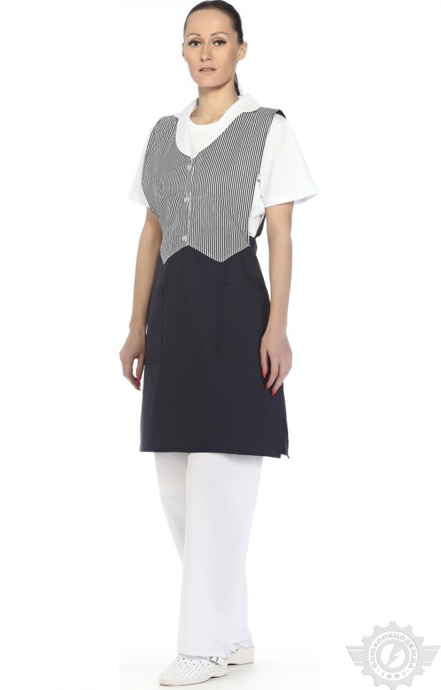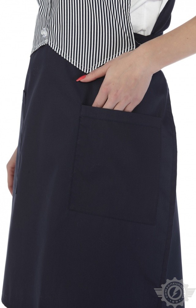 Фартук-жилетка синего цвета “Маша” применяется для экипировки кассиров, продавцов-консультантов и других работников сферы услуг.