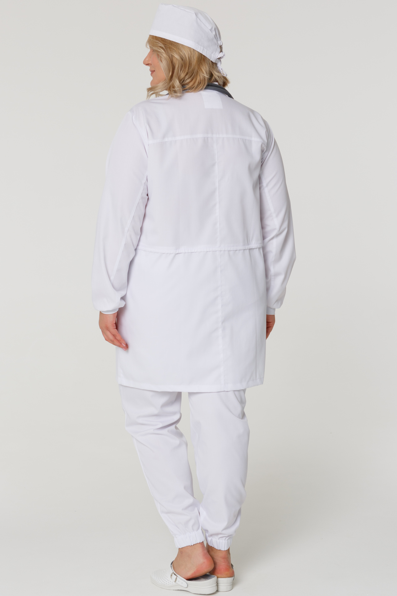 Интересная модель халата в спортивном стиле с кулиской на шнурке, с длинным рукавом. Халат разработан с учетом современных лекал, требований защиты и безопасности, комфортен и удобен в использовании. Удобный крой не стесняет движений.