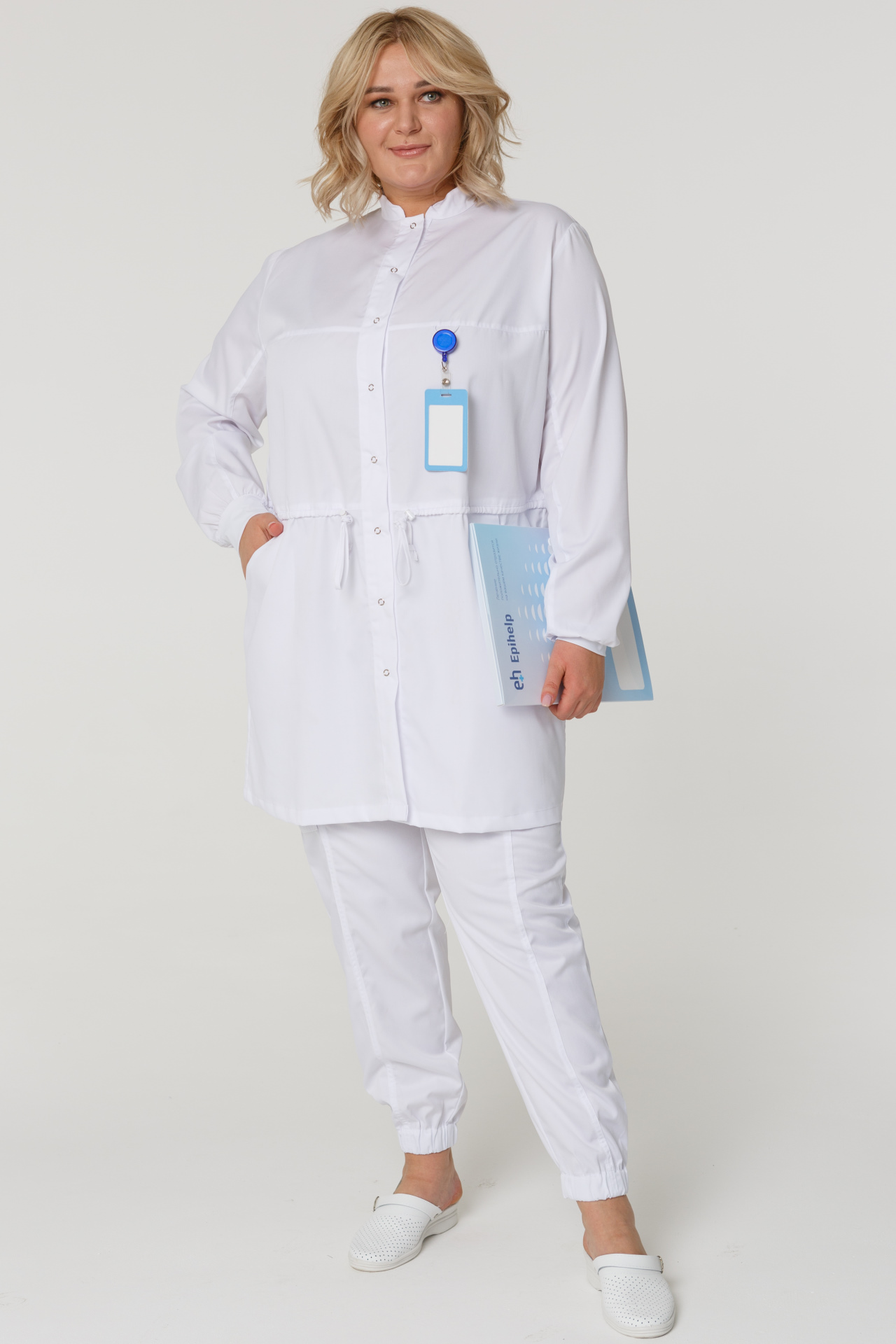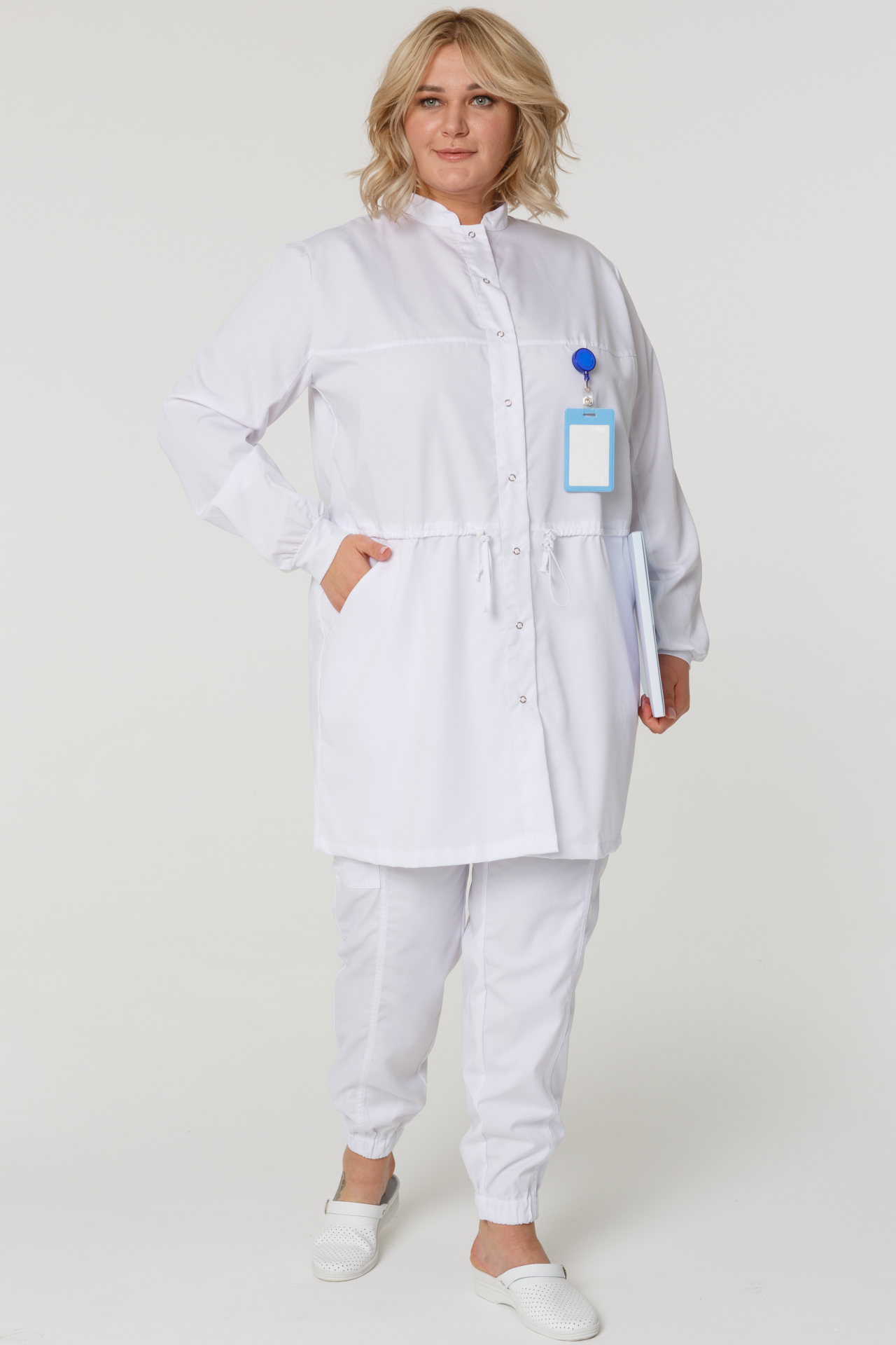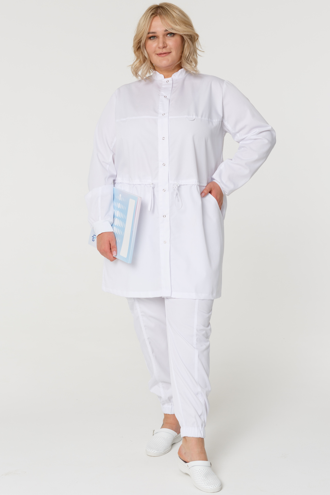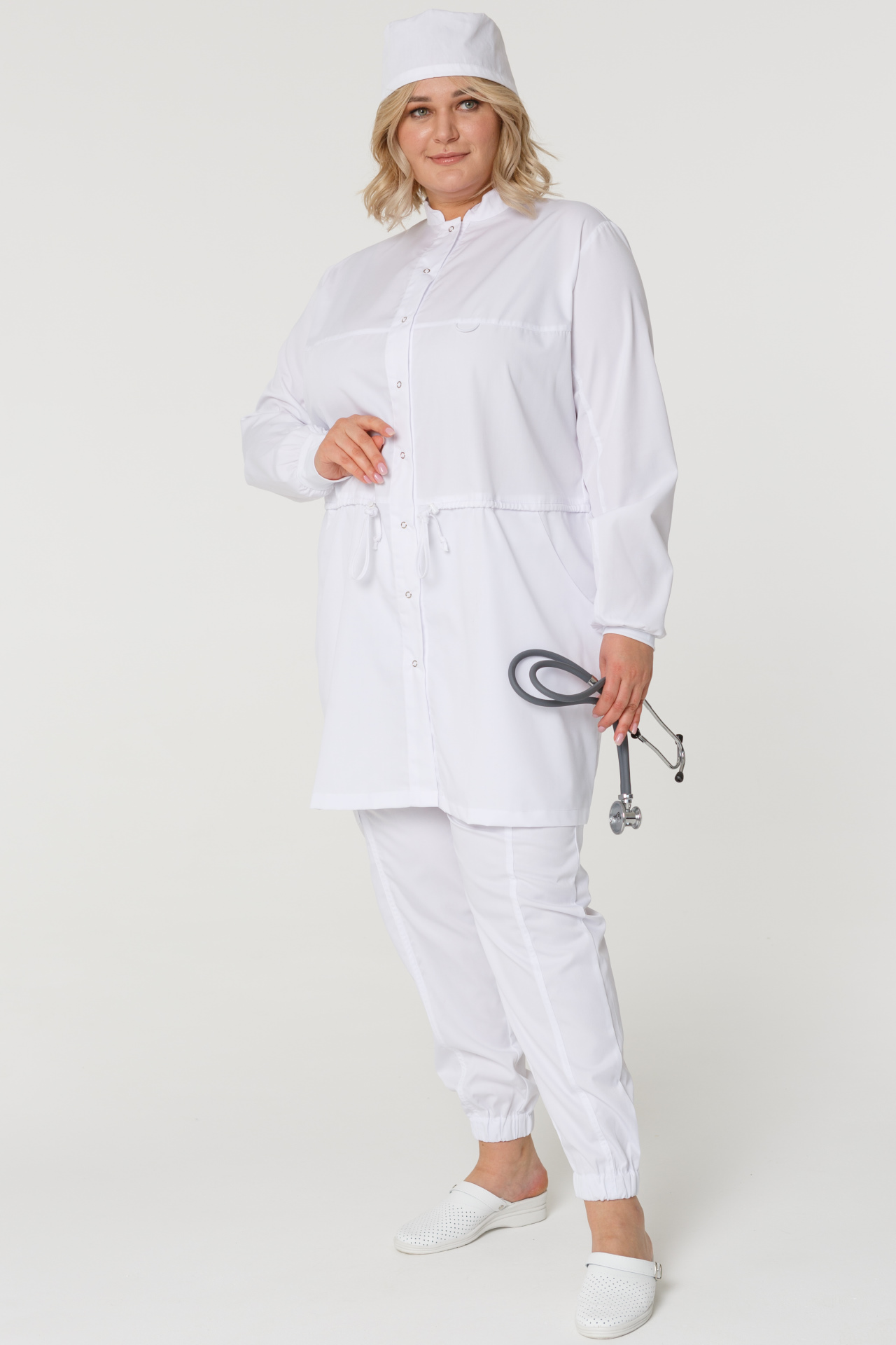 Халат ГВЕНН женский белый, длинный рукав, кнопки