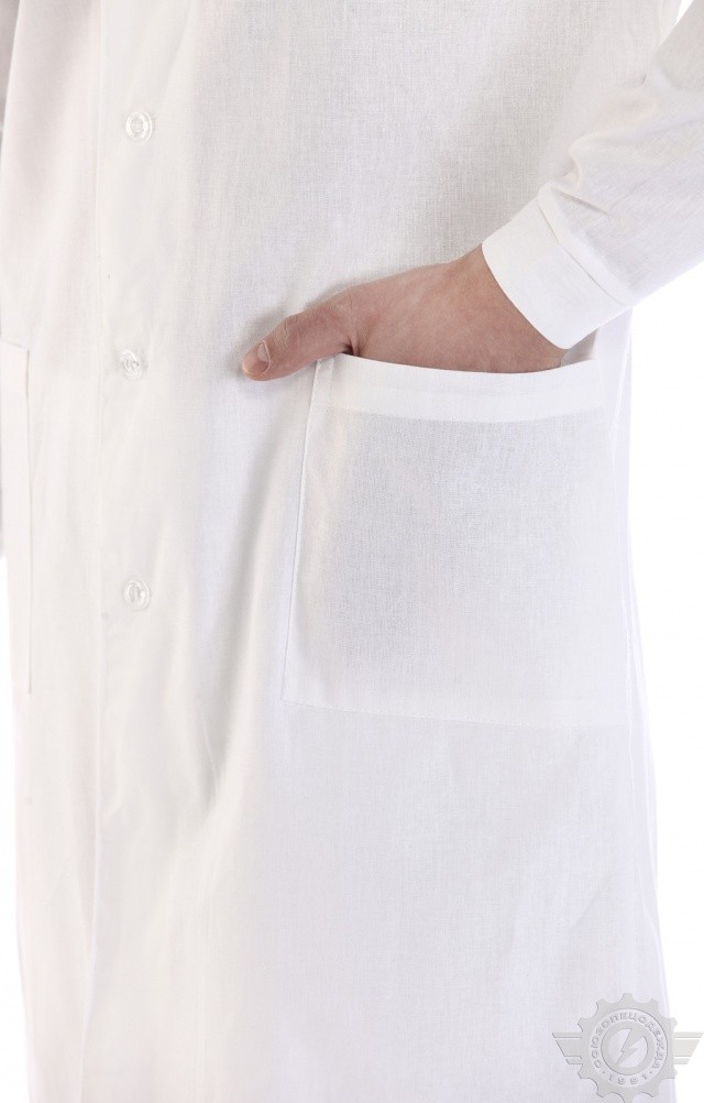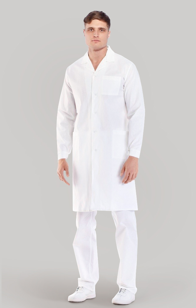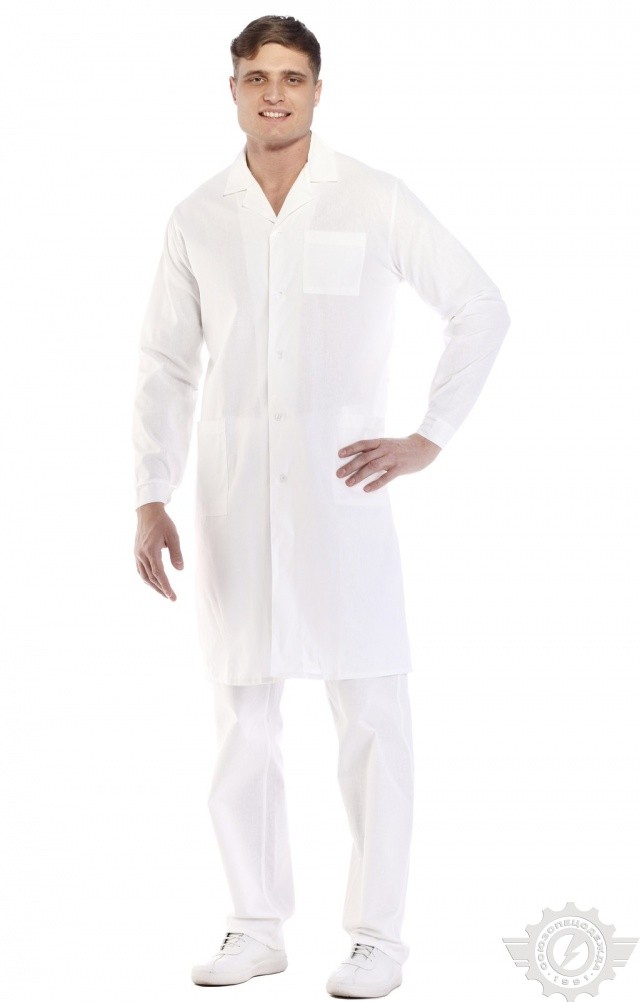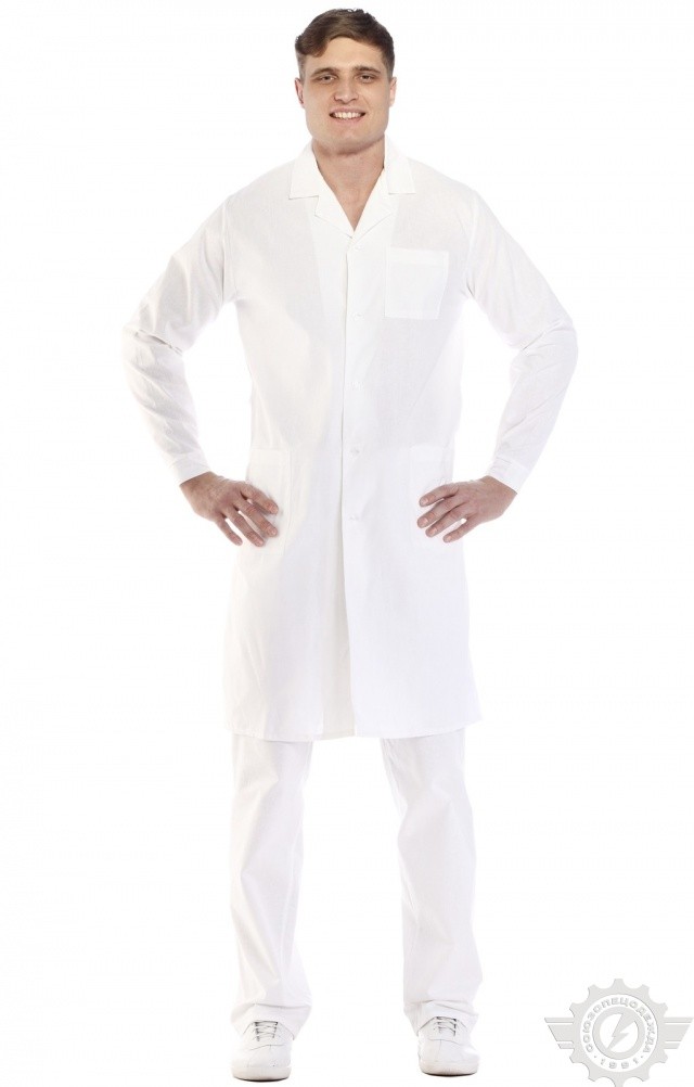 Медицинский белый мужской халат служит для обеспечения стерильности одежды врача и для выделения его среди пациентов и посетителей медицинского учреждения.