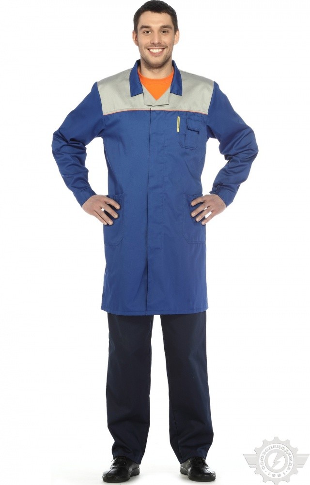 Мужской халат “Профессионал” из смесовой ткани ERGOstuff для любых видов работ.
