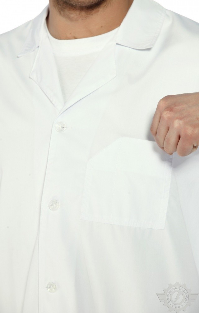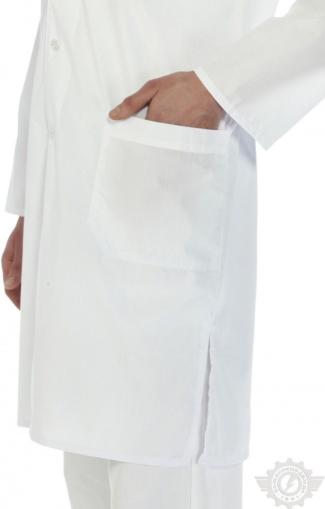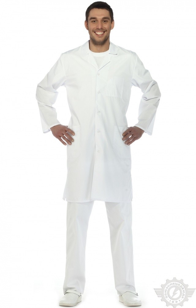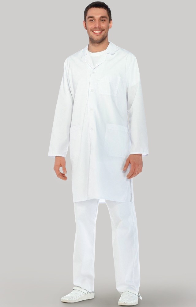 Мужской медицинский халат “Сервис” белого цвета предназначен для экипировки медработников.