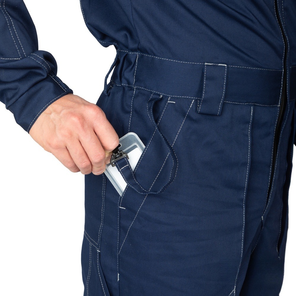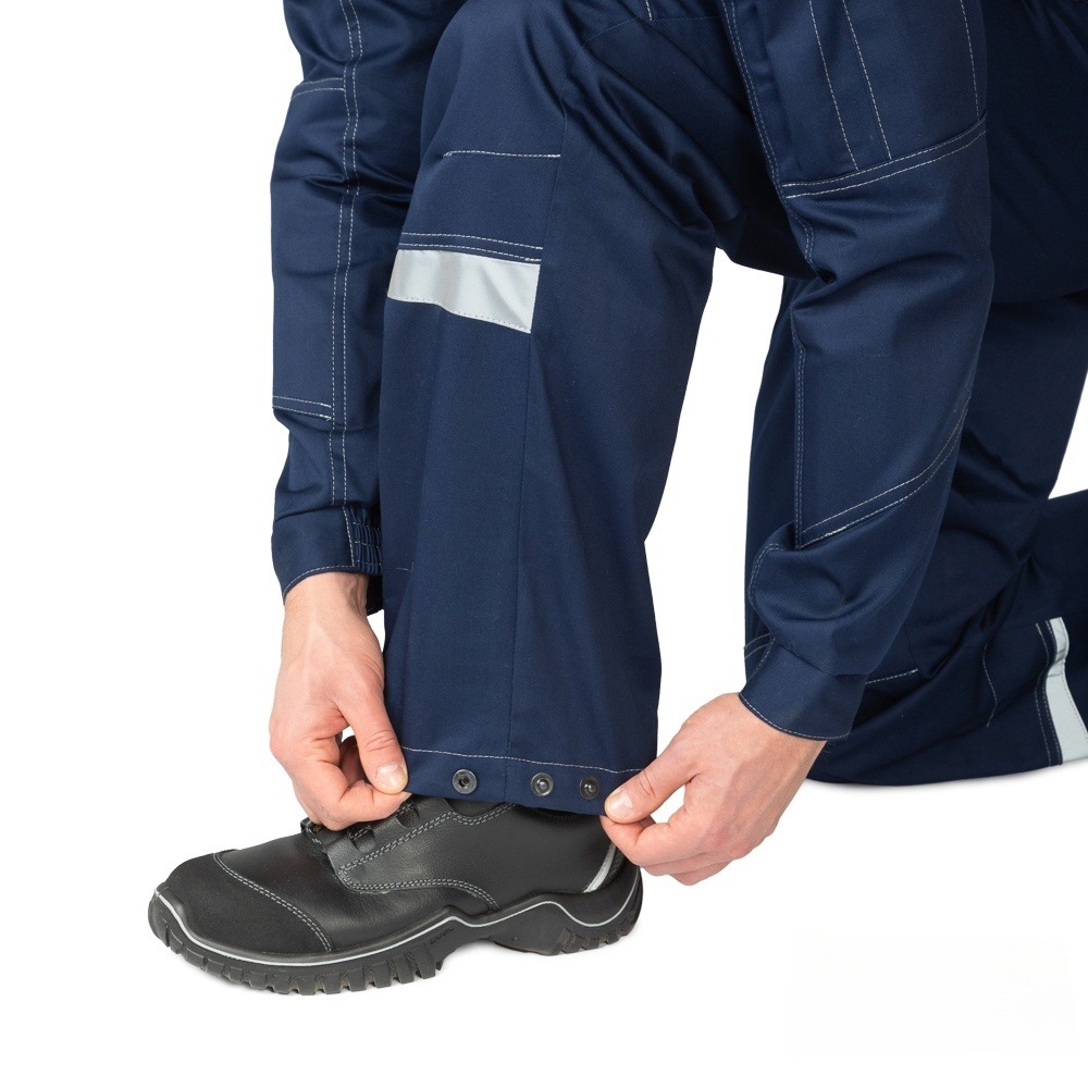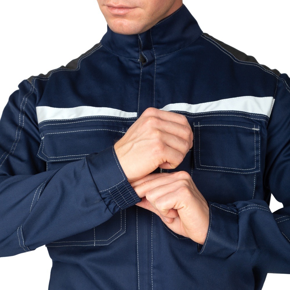 • смесовая ткань (65% полиэфир и 35% хлопок), из которой пошит комбинезон, обеспечивает хорошую воздухопроницаемость, износостойкость, а водоотталкивающая отделка гарантирует стойкость к загрязнениям и воздействию любых жидкостей.
