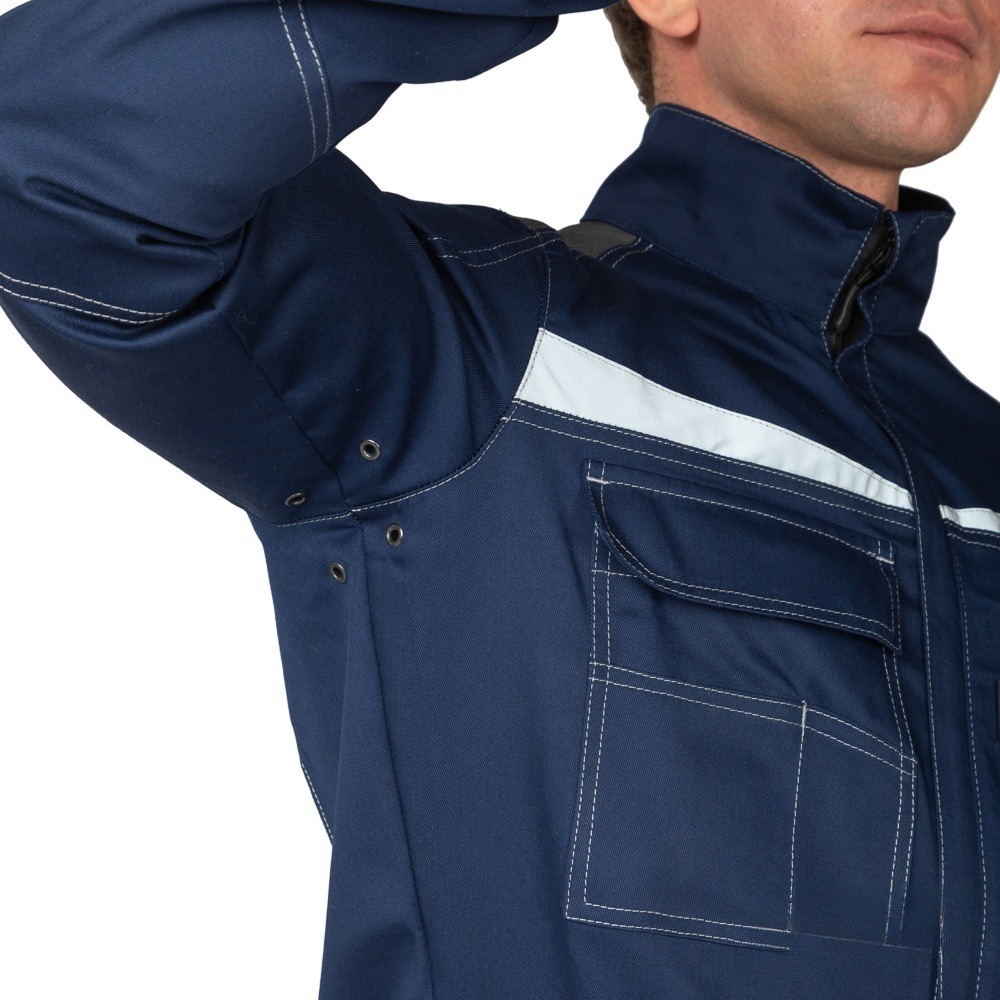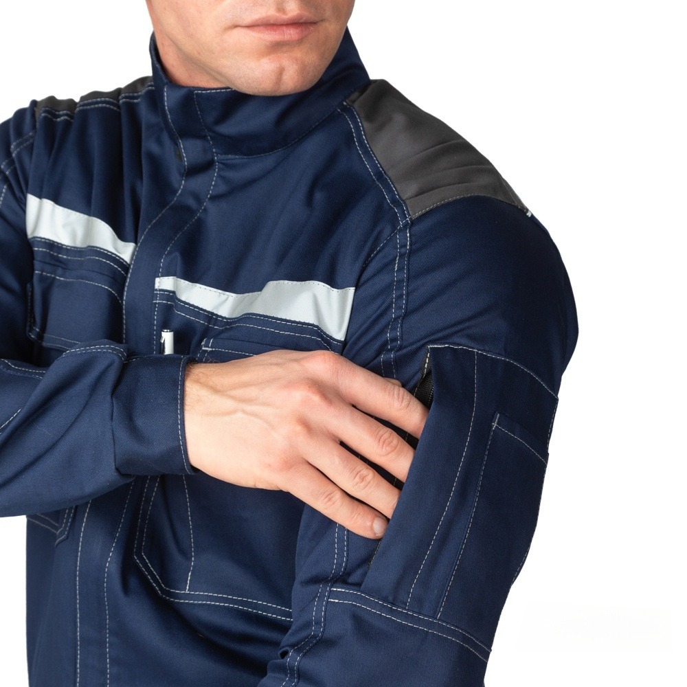 • специальные усилительные накладки на локтях и коленях сделаны с учетом особенности механики тела при движении и повторяют анатомический изгиб локтевого и коленного сустава, обеспечивая хорошую посадку и комфорт во время работы. Общая плотность ткани составляет 420 г/м², что гарантирует высокую степень защиты локтевого и коленного сустава, а также обеспечивает высокое сопротивление на разрыв, раздир и стойкость к истиранию;