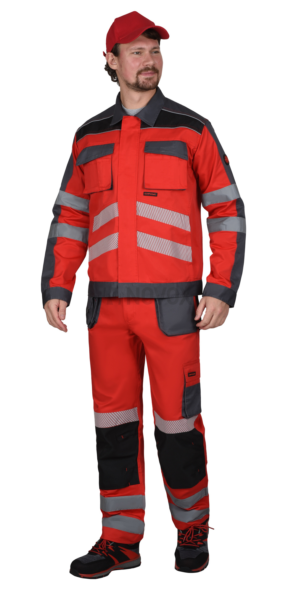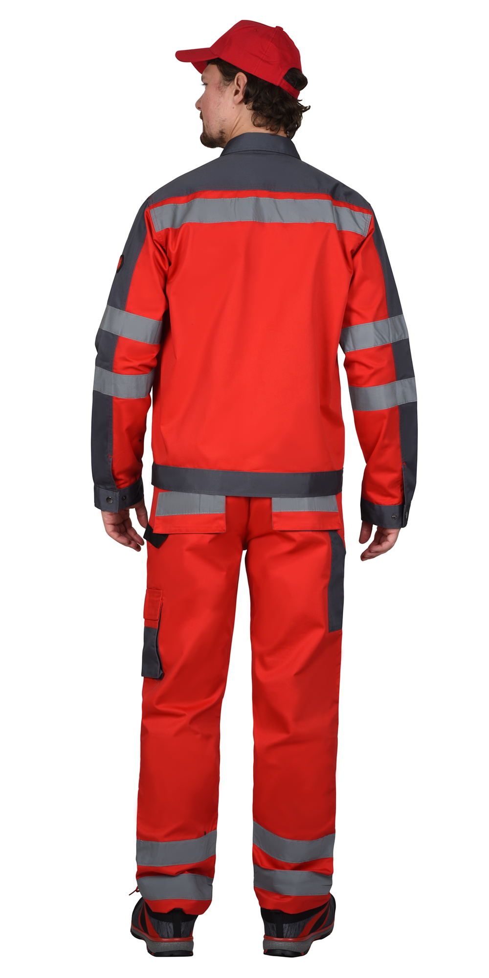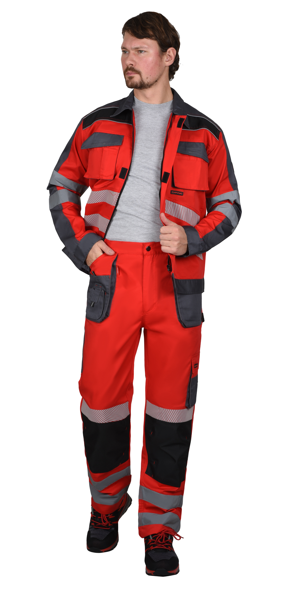 Костюм "АТОМ" куртка, брюки красный с серым, СВ кант, СОП 50 мм
