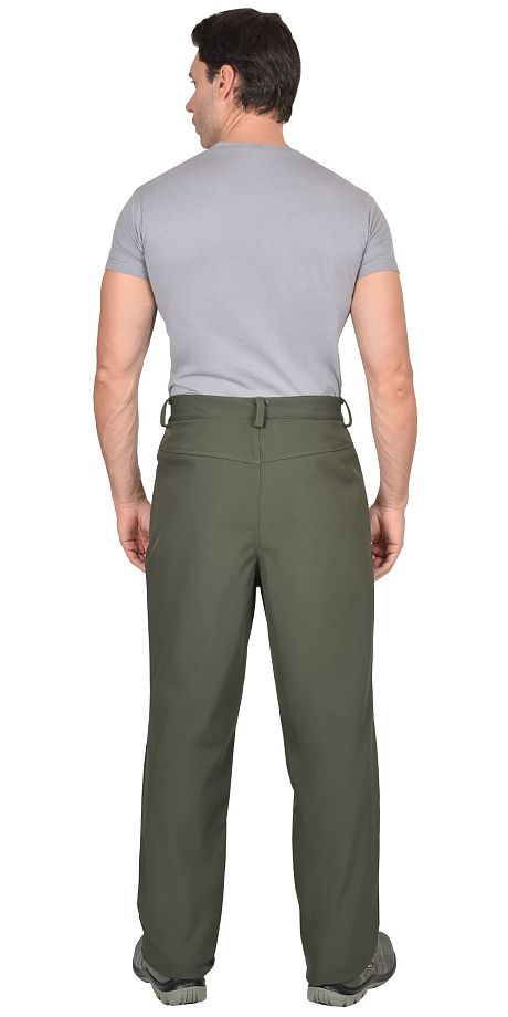 Брюки прямые, на притачном поясе, с застёжкой спереди гульфик на тесьму «молния». Брюки с боковыми внутренними карманами фигурным входом, на задних половинках с отрезной кокеткой. Ткань верха - «Софтшелл» состав: 100% п/э.; пл. 350 г/м ГОСТ 25295-2003