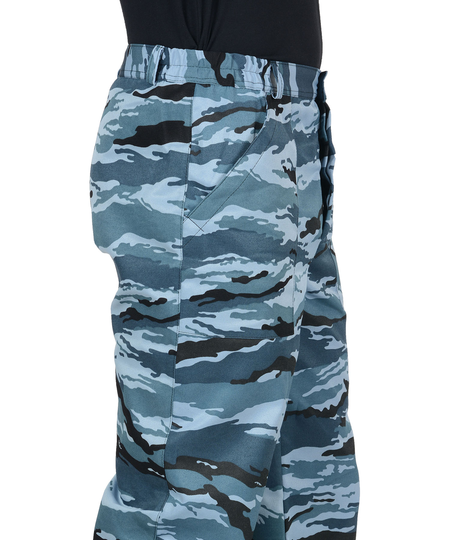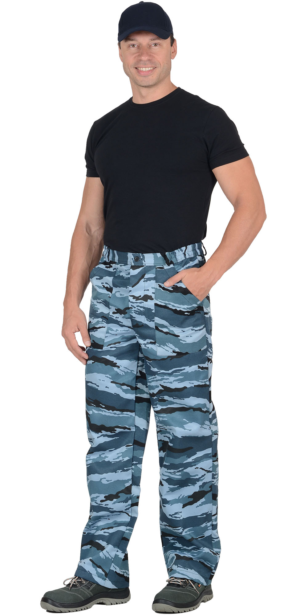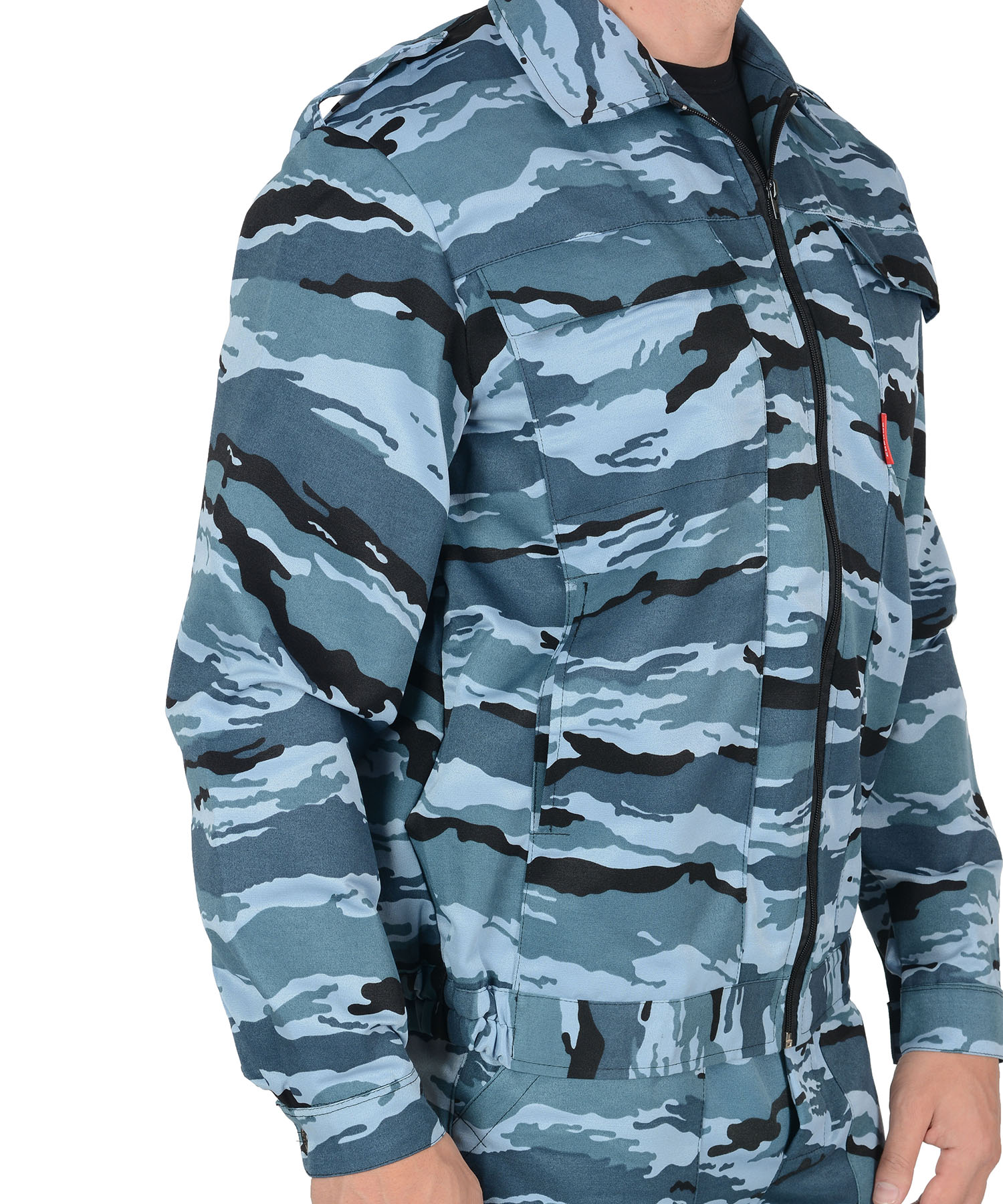 Куртка короткая, прямого силуэта, с отложным воротником, с центральной бортовой застежкой на молнию; с погонами по плечам на пуговицах, с притачным поясом, понизу частично стянутым резинкой; с нагрудными карманами, с боковыми карманами в вертикальных швах. Рукава, втачные, двухшовные с манжетами на пуговицах. Брюки с притачным поясом, застёгивающимся на 1 петлю и пуговицу; с 5 шлевками и резинкой ткацкой по боковым швам брюк; с застежкой гульфика на три петли и пуговицы; с двумя накладными боковыми карманами с наклонным входом. Ткань верха: смесовая с ВО пропиткой состав: 80% п/э, 20% х/б; пл. 220 г/м² ТУ 8550-001-81391241-2008