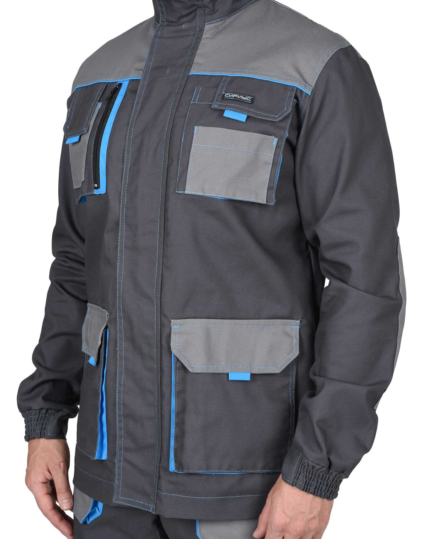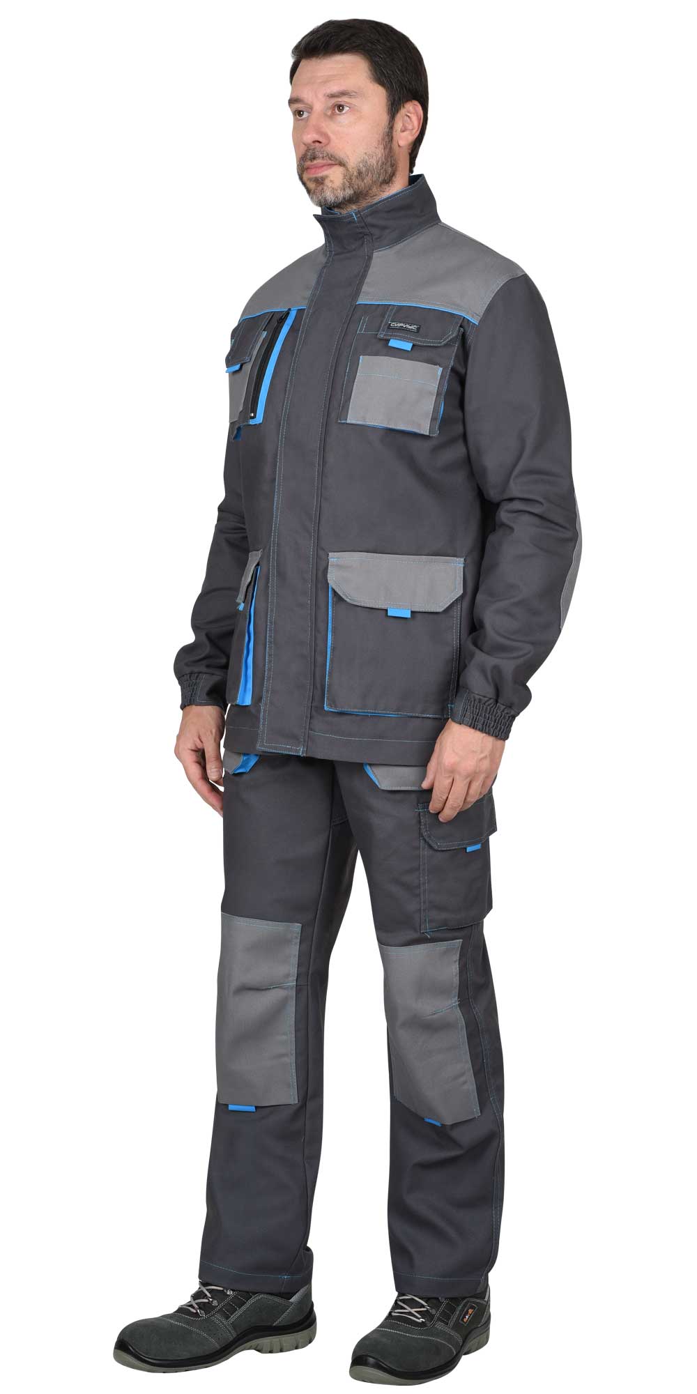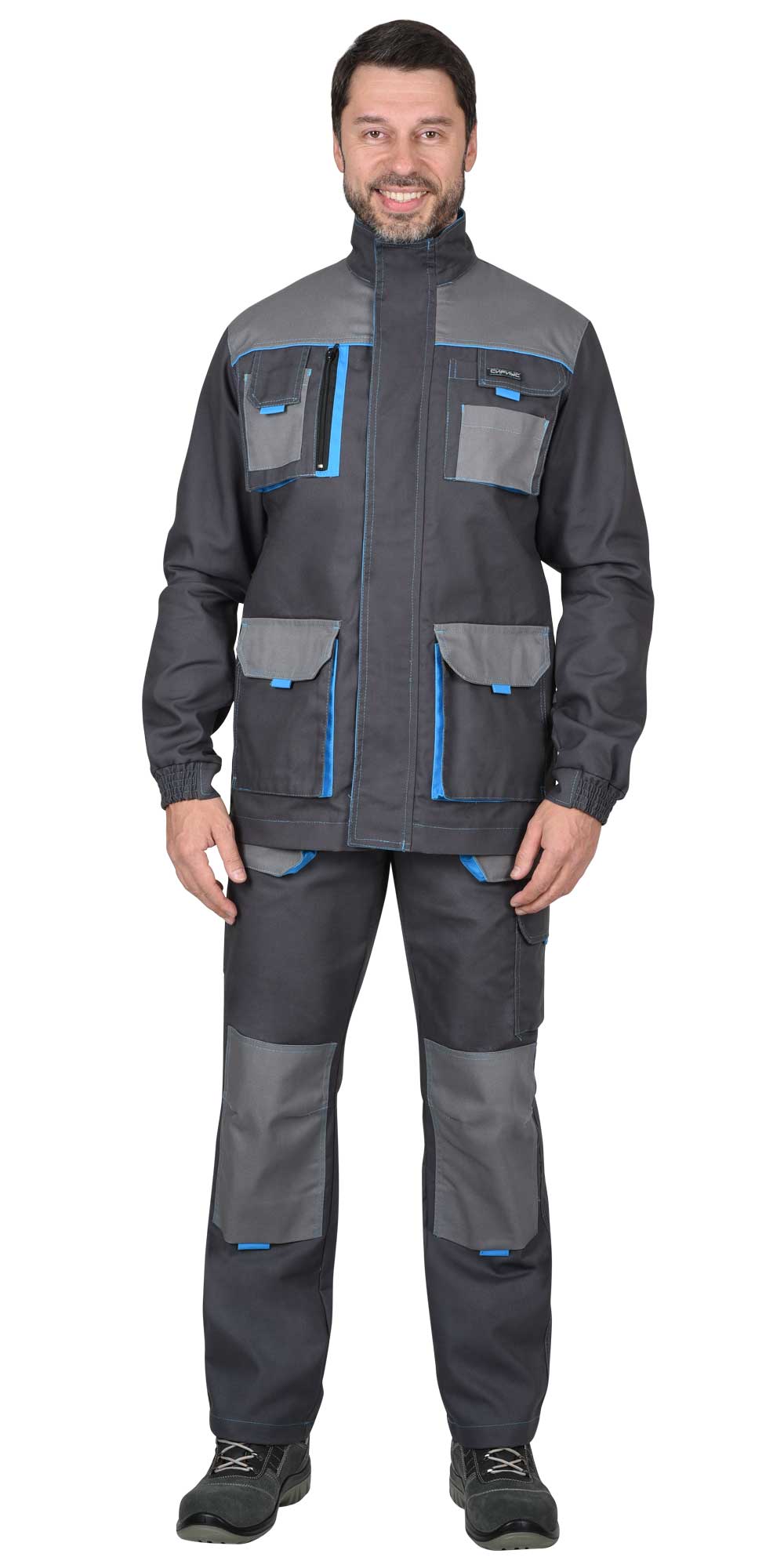 арт.050942 Куртка "СИРИУС-Двин" длин., т.серый со средне серым и голубой отделкой, пл. 275 г/кв.м (ЧЗ)