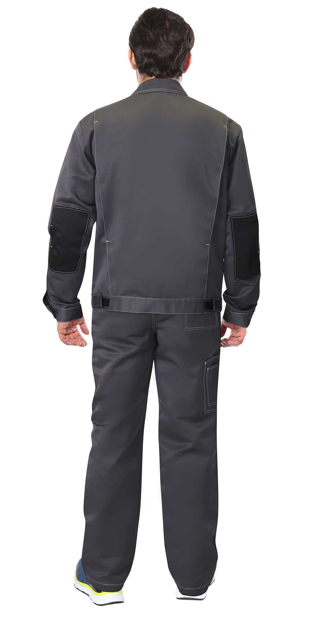Костюм ФАВОРИТ куртка, брюки т.серый с черным и лимонным кантом, 80% ПЭ, 20% ХБ
