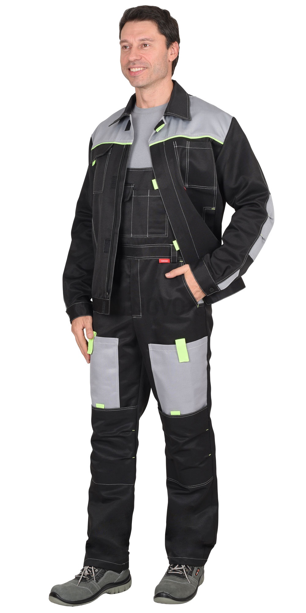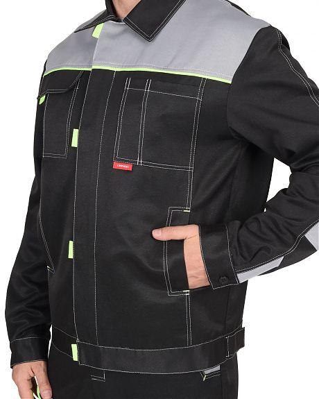 Костюм "ФАВОРИТ" куртка, п/к черный со св.серым с лимонной отделкой