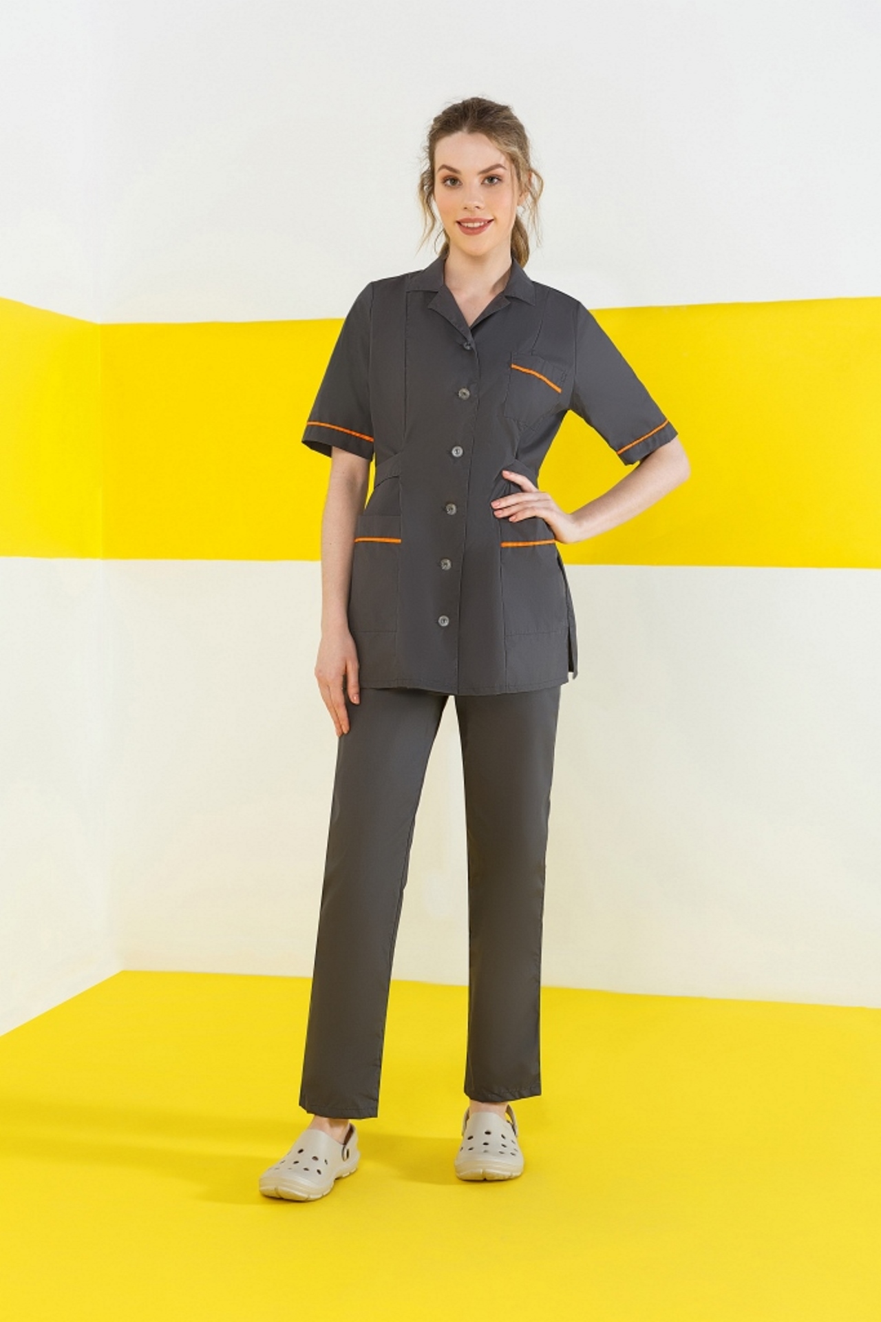 Костюм из легкой смесовой ткани немарких темных цветов - незаменимая одежда для работников, связанных с уборкой и сервисом.