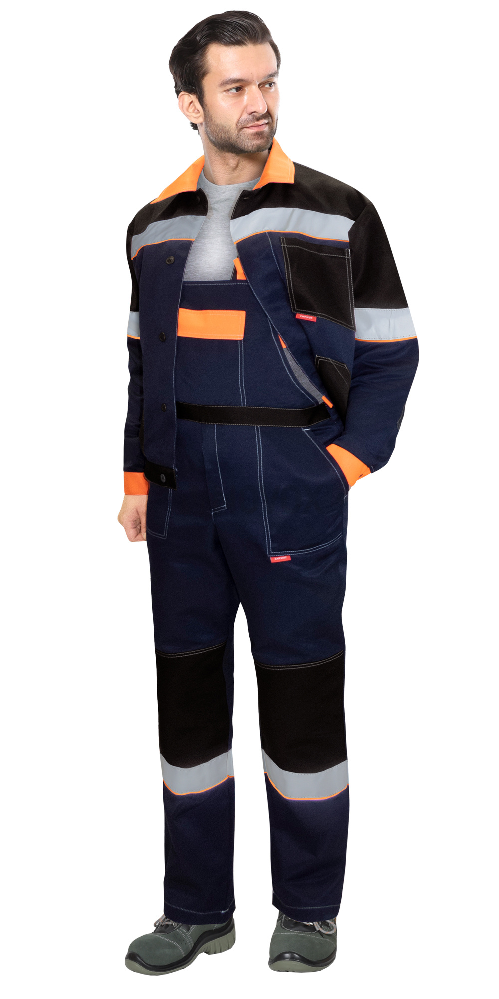 Костюм летний состоит из куртки и полукомбинезона. В костюме предусмотрена лента светоотражающая ш.50 мм для сигнальной видимости.