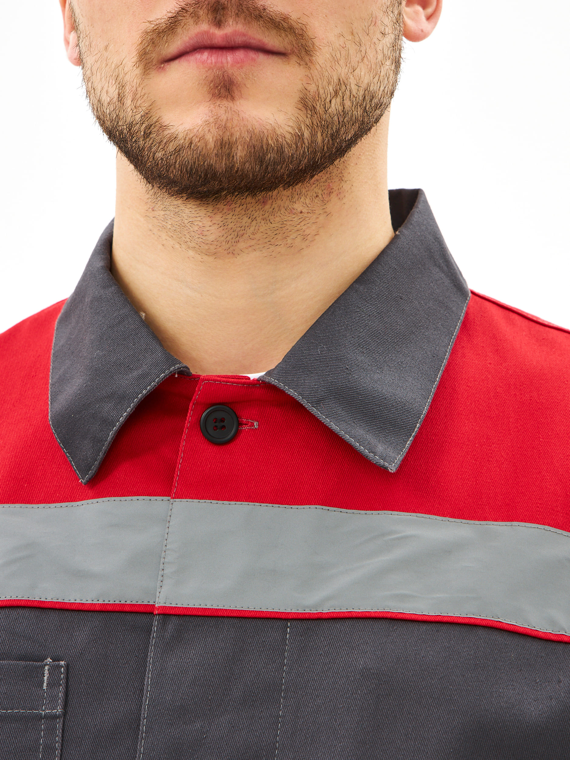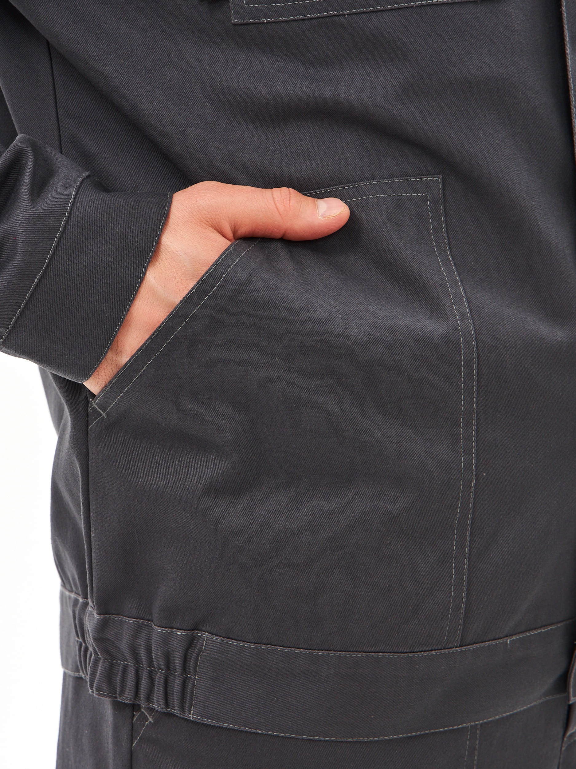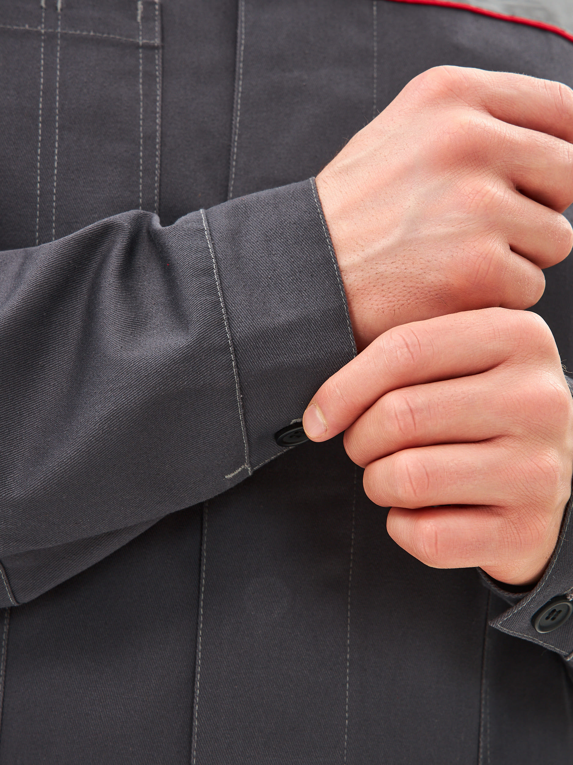 Костюм испытан в реальных рабочих условиях и получил положительные отзывы от работников разных специальностей. Благодаря высокому содержанию хлопка, ткань дышит, хорошо впитывает влагу и отводит ее от тела. Высокопрочные полиэфирные волокна обеспечивают прочность, малоусадочность и легкость в уходе. Накладные детали настрочены двойной строчкой.