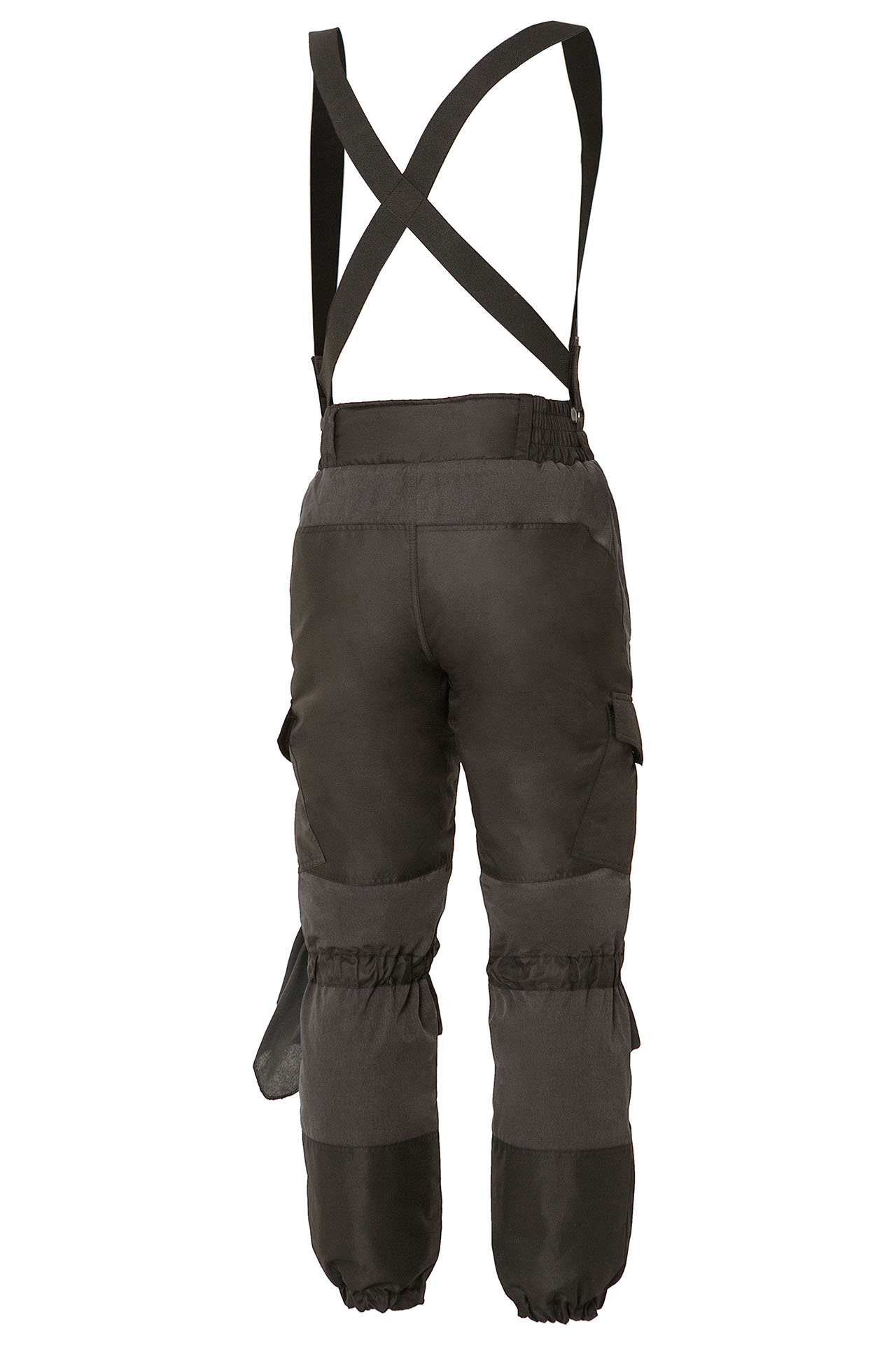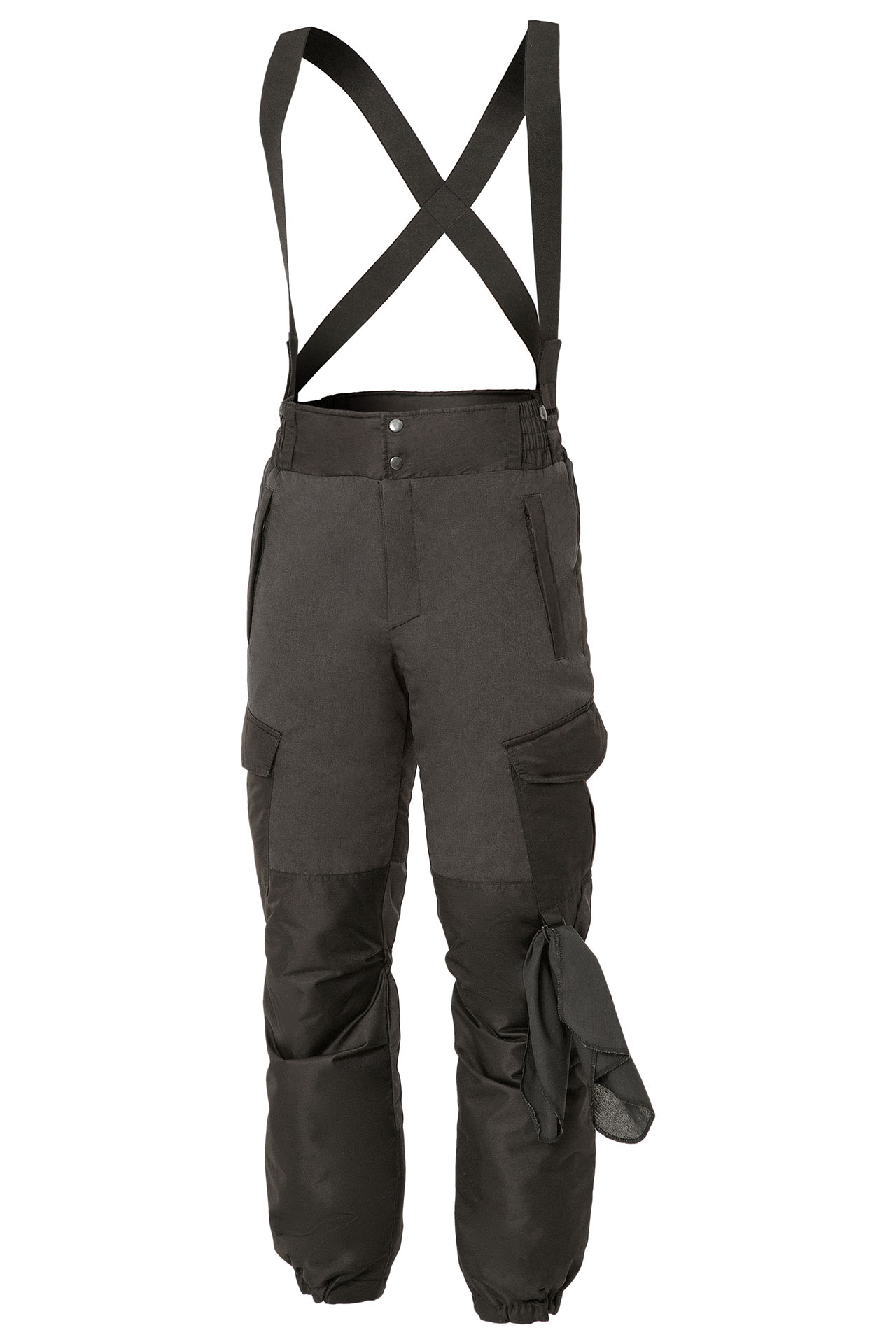 Утепленные брюки прямого силуэта со съемными эластичными помочами.