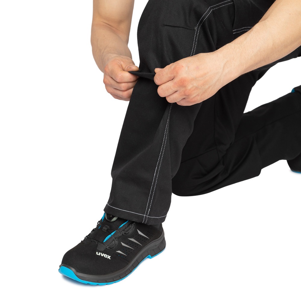 Усилительные элементы: на куртке: анатомические накладки увеличенного размера на локтях обеспечивают высокое сопротивление на разрыв и стойкость к истиранию; на брюках: анатомические накладки на коленях выполнены в виде карманов для возможности размещения амортизационных вкладышей-наколенников для защиты коленного сустава.