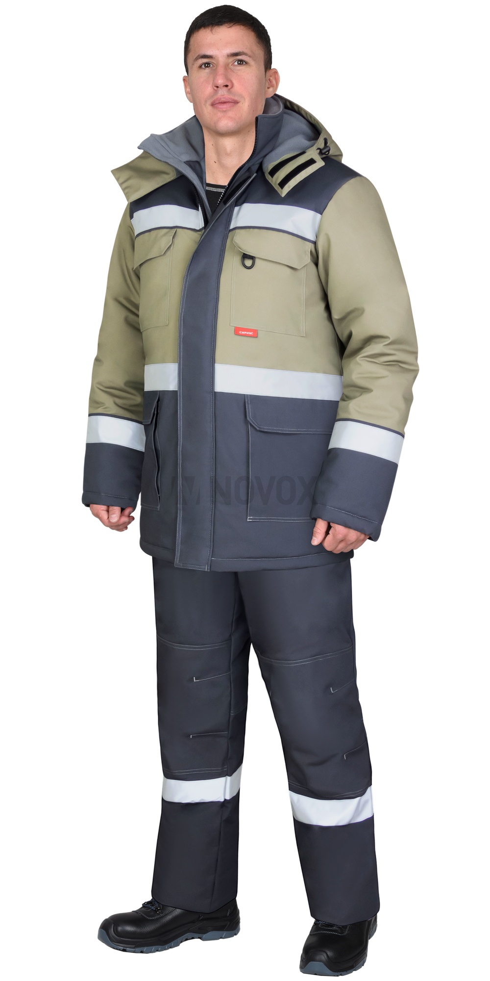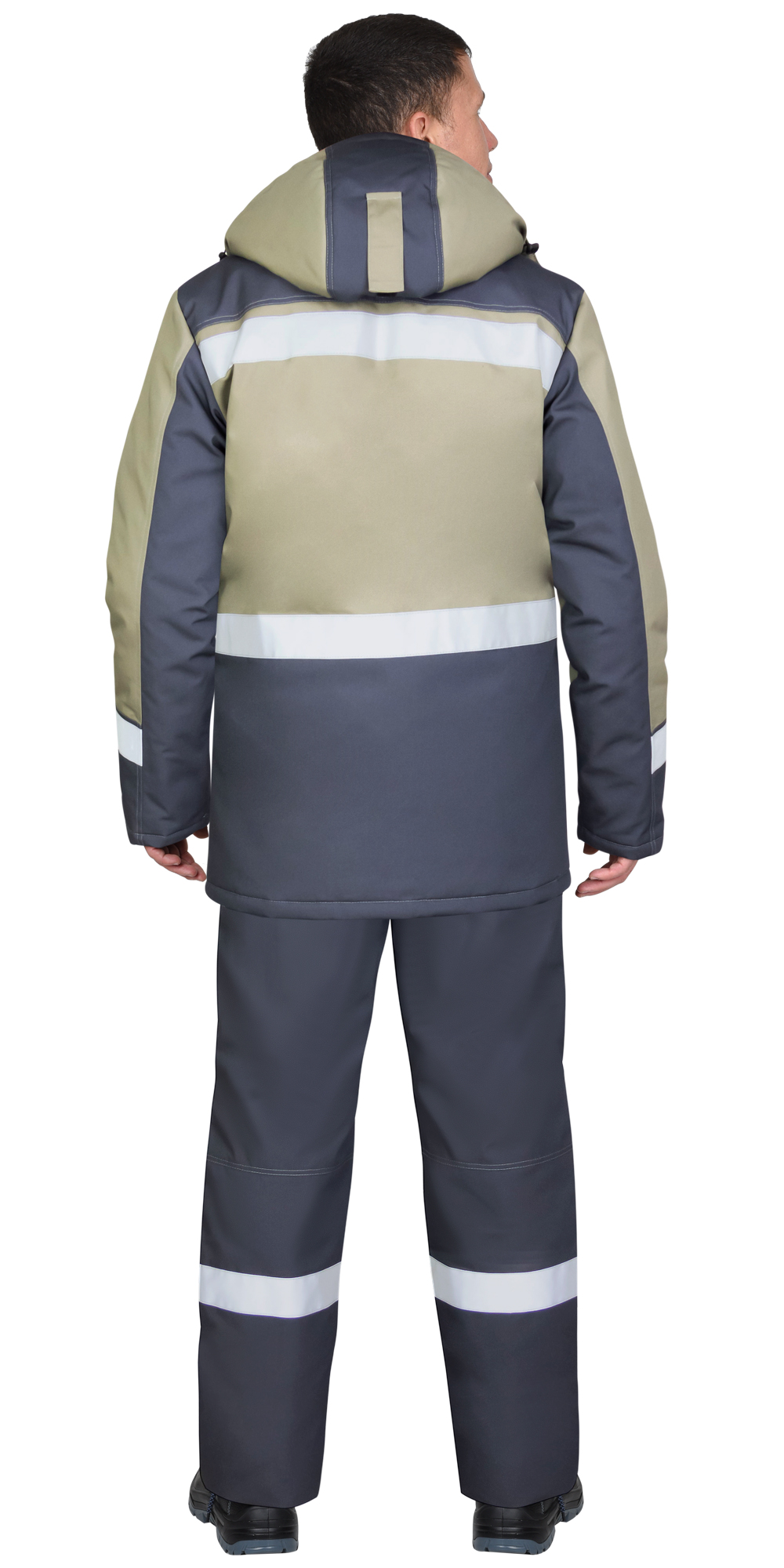 Костюм зимний, состоит из куртки и брюк. В костюме – на куртке и брюках предусмотрена лента светоотражающая для обеспечения сигнальной видимости.