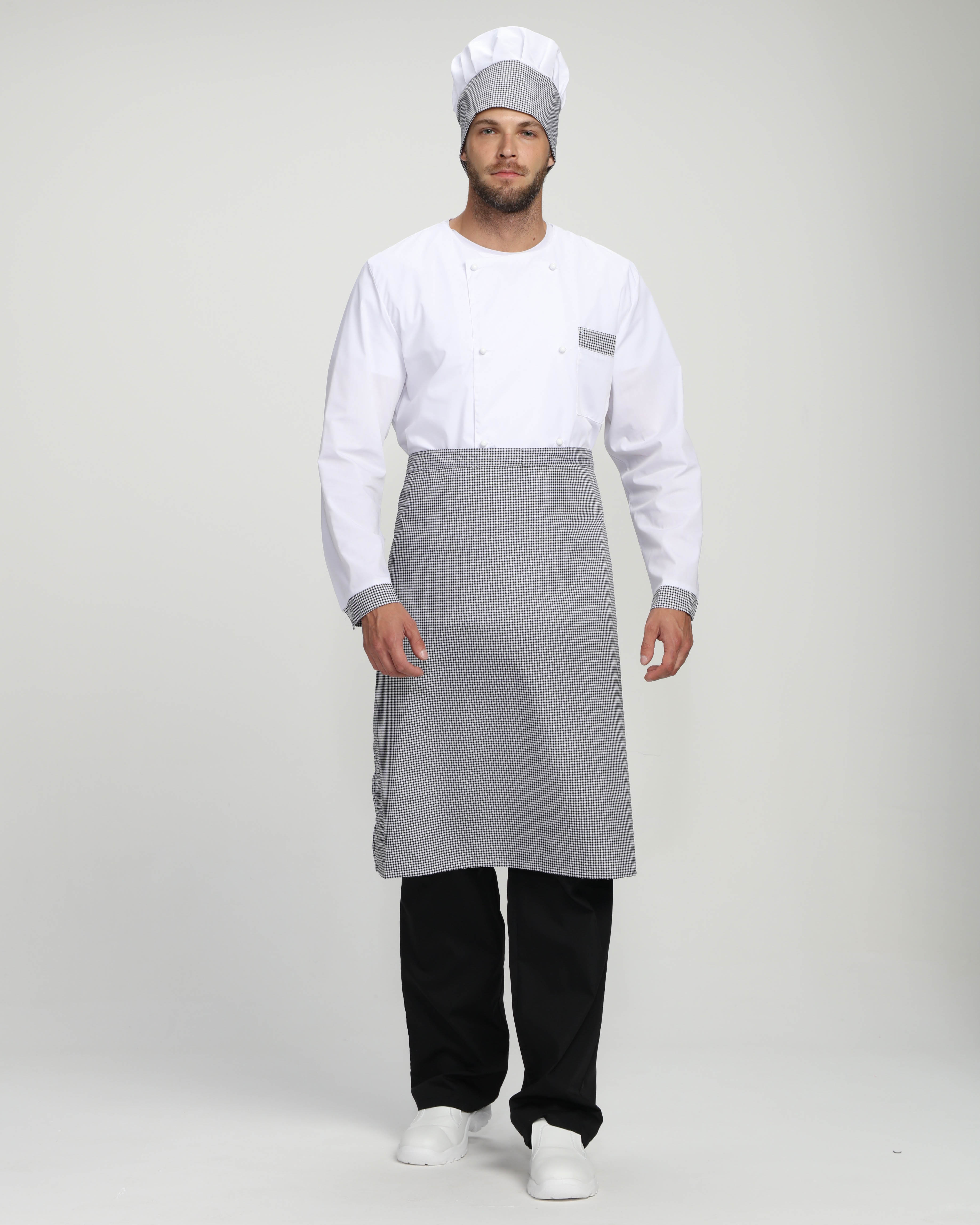 Костюм повара Шеф-2 (тк.ТиСи), белый/черный/принт-клетка