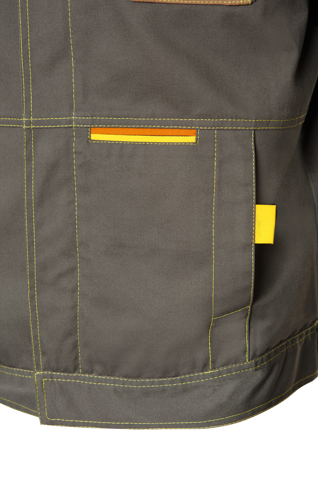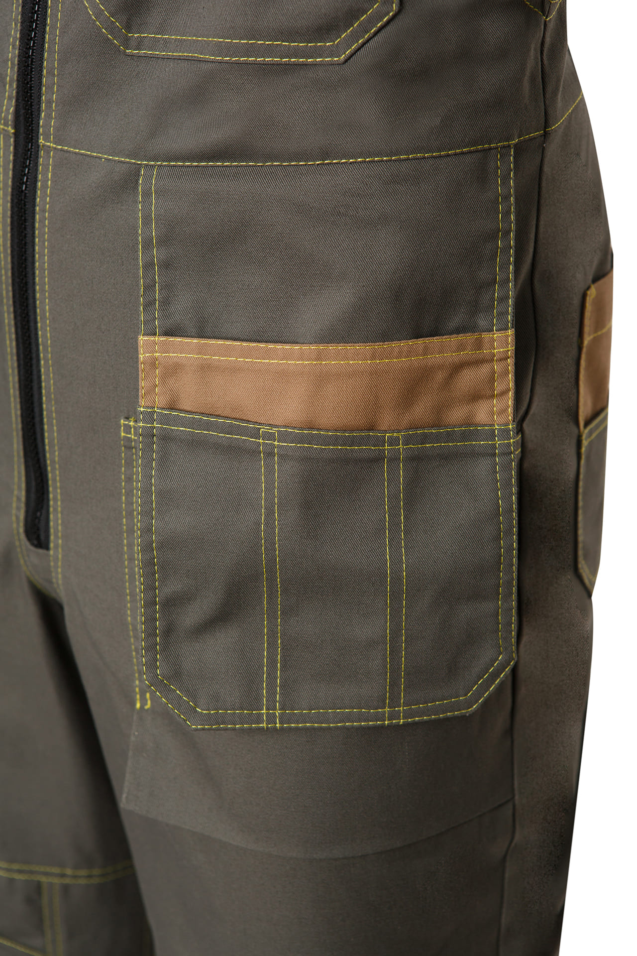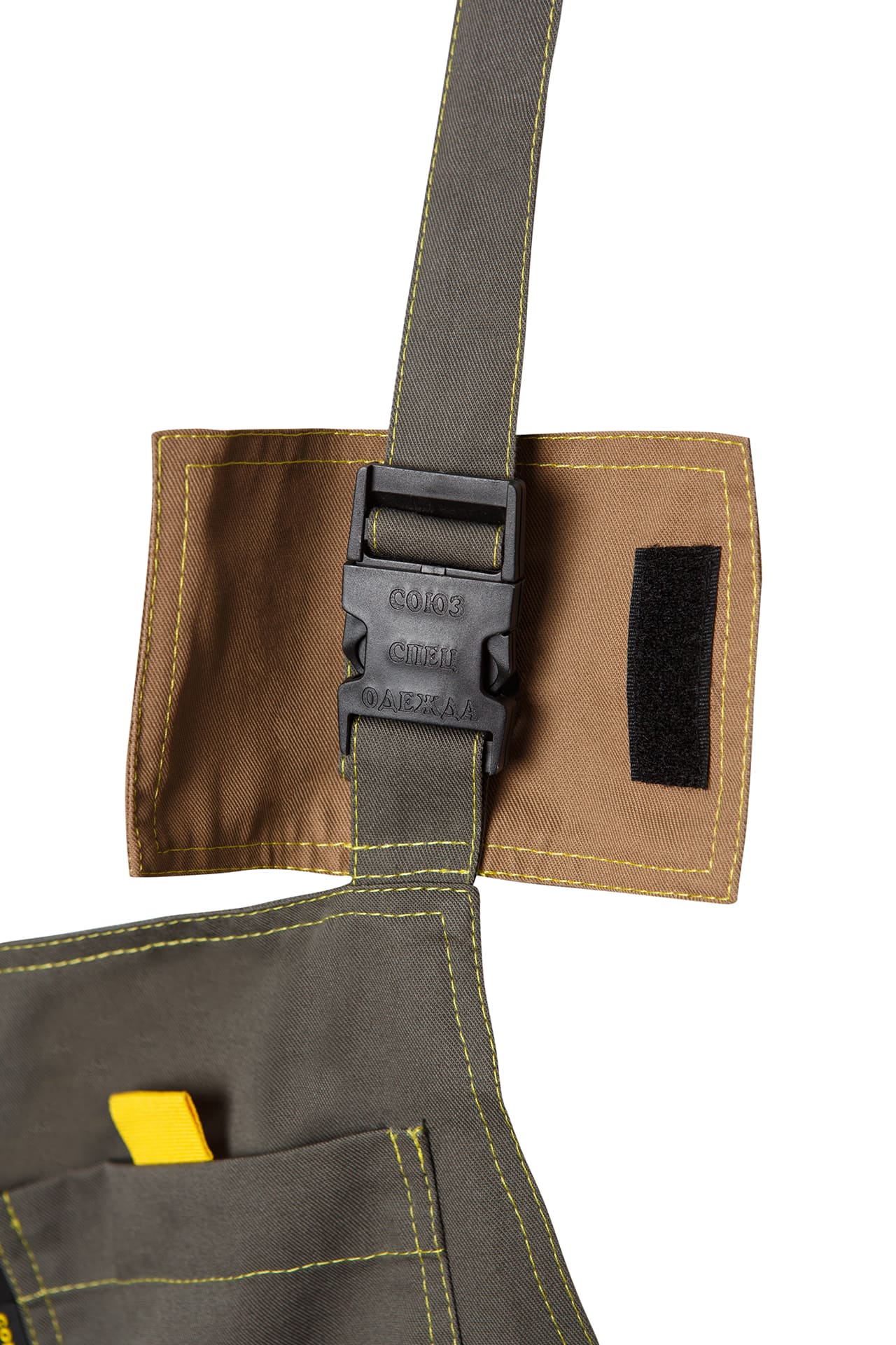 Дополнительную прочность соединений костюма обеспечивают двойные отделочные строчки и специальные закрепки.