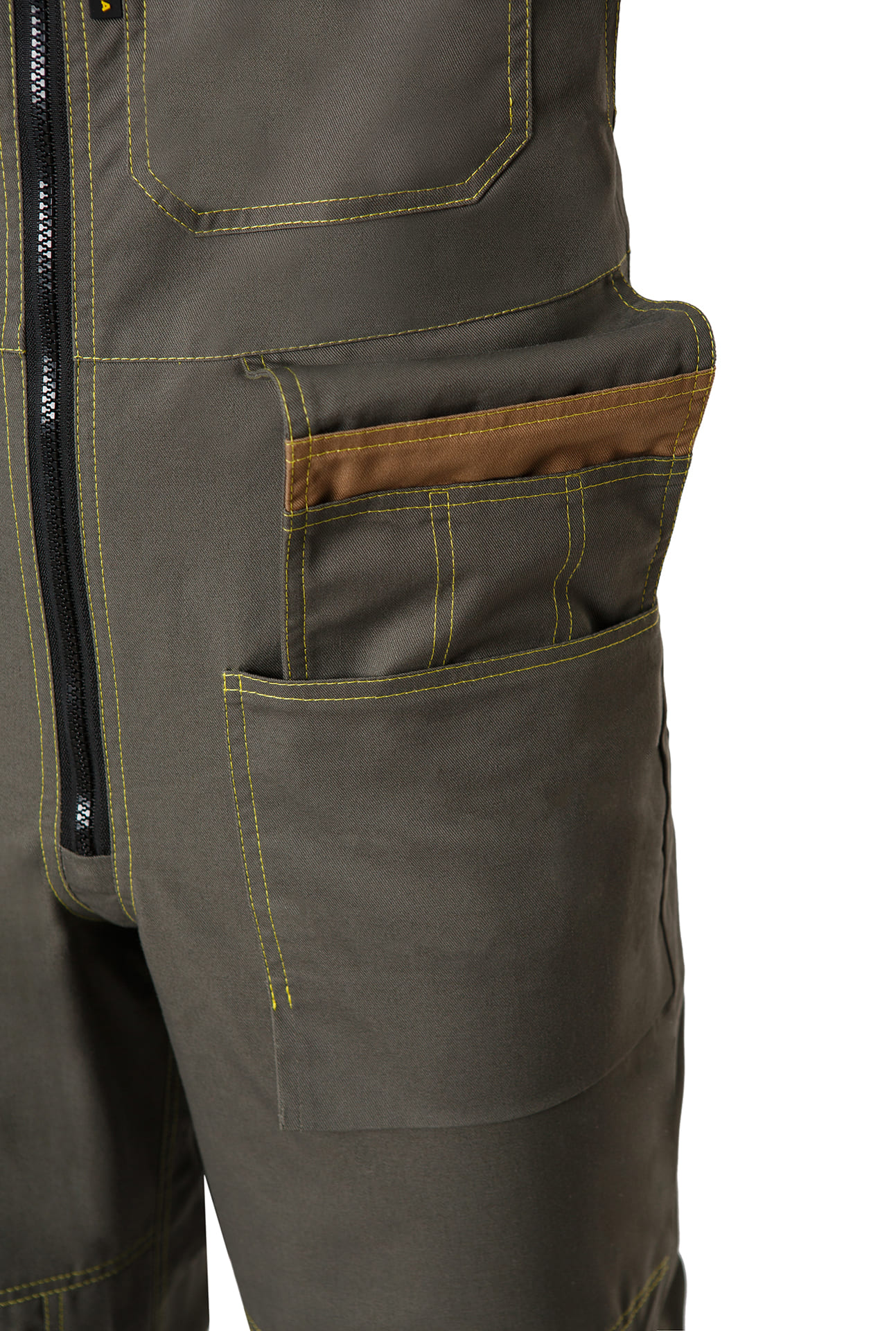 На коленях усиление в виде накладных карманов, позволяющих использовать амортизационные вкладыши – наколенники. Внутренний карман имеет два положения по высоте.