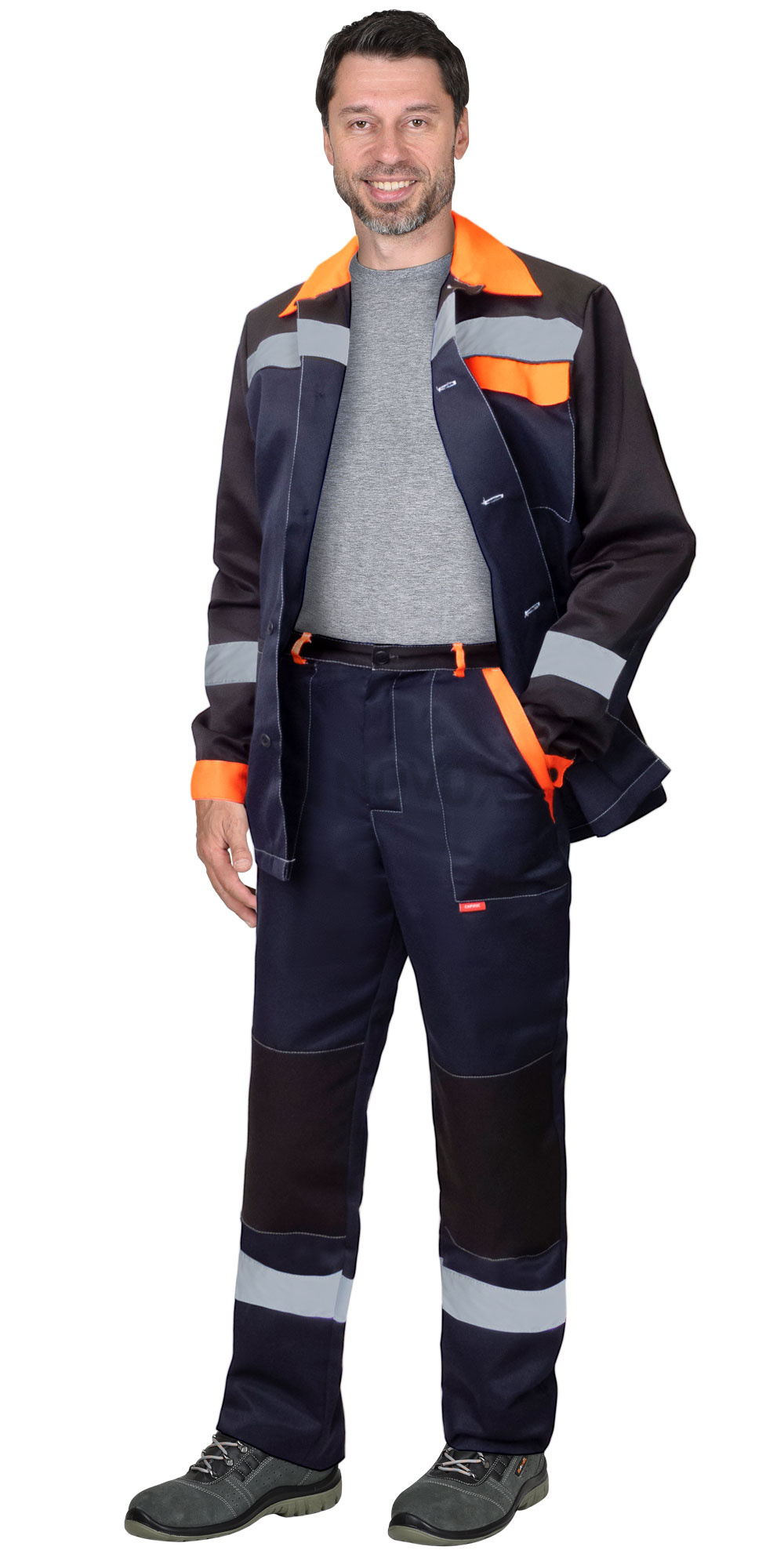 Костюм ПРОФИЛЬ куртка, брюки синий с черным с оранжевой отделкой и СОП