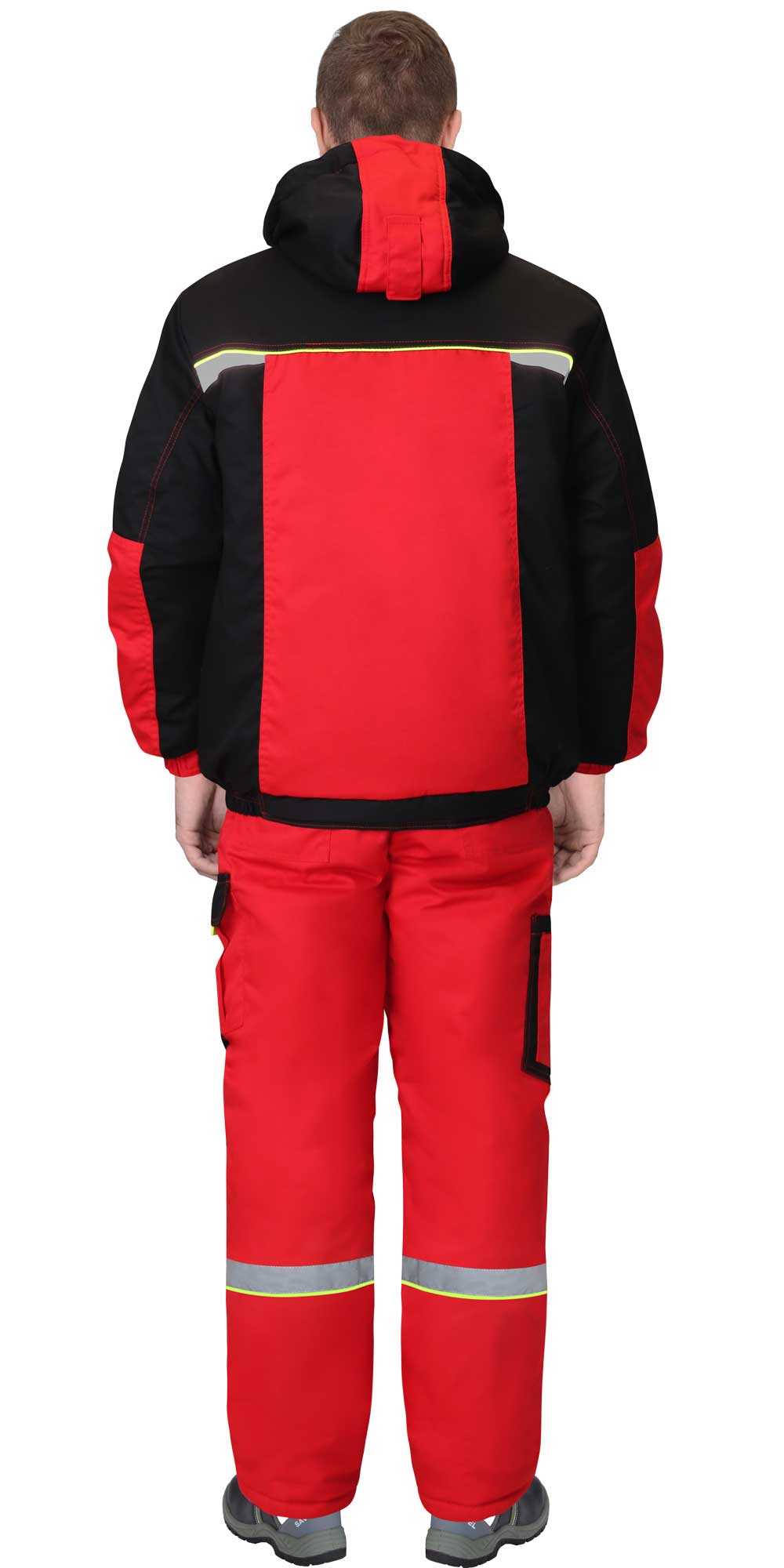 Костюм зимний состоит из куртки и полукомбинезона. В костюме предусмотрены светоотражающие детали для обеспечения видимости работающего в тёмное время суток.