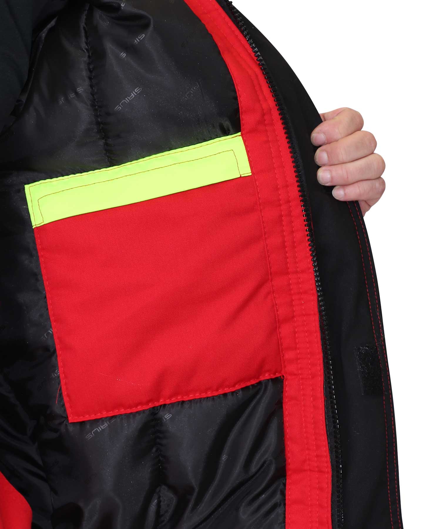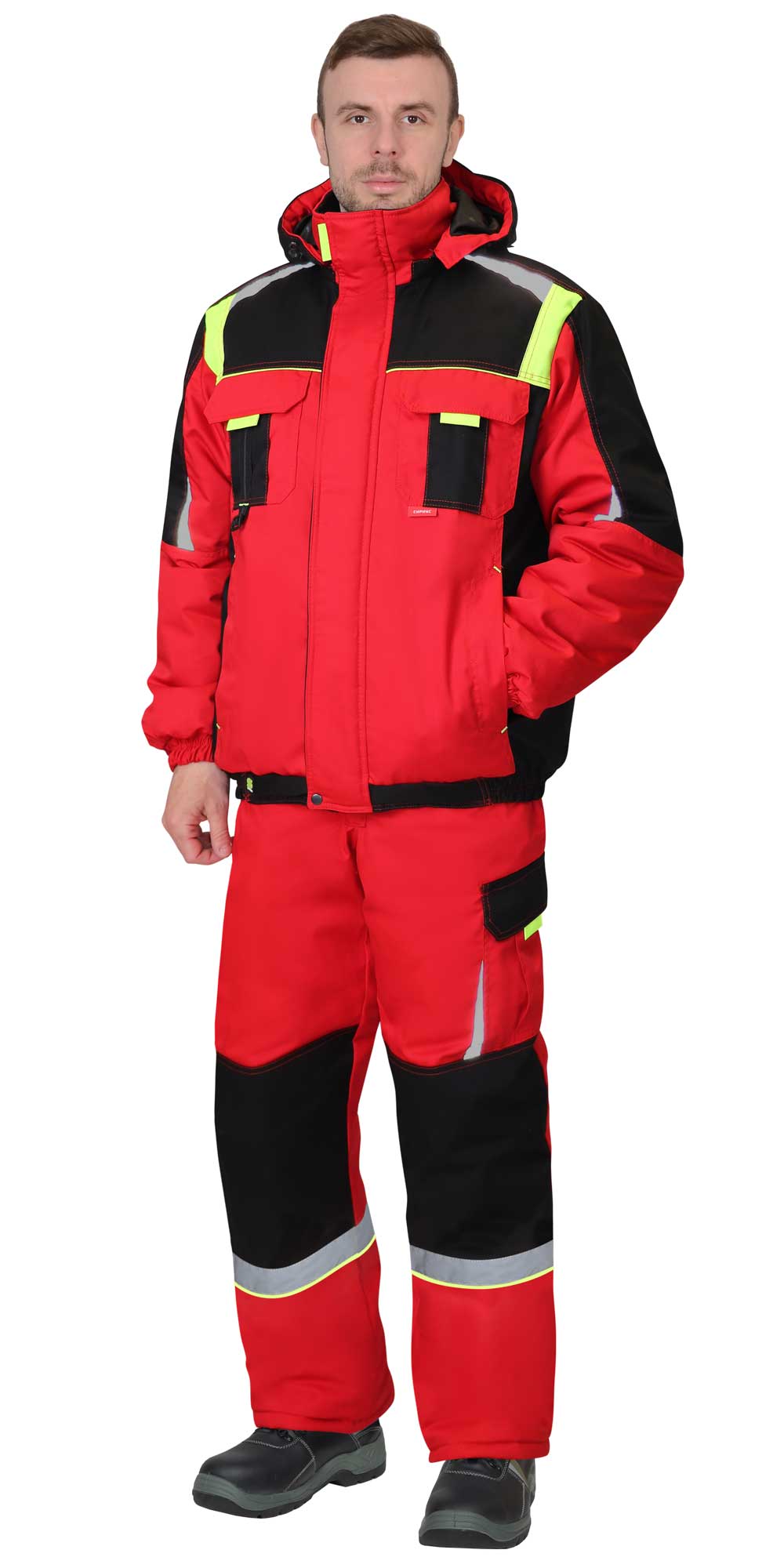 Костюм СИРИУС-СТАН куртка, п/к, красный с черным и лимонной отделкой