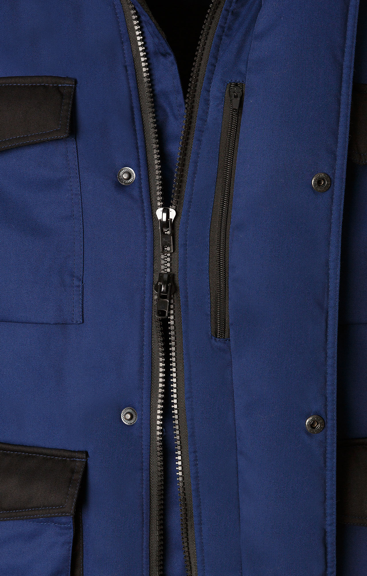 - На отрезной части левой полочки, под ветрозащитной планкой, прорезной карман в рамку, с застежкой на тесьму – молнию.
