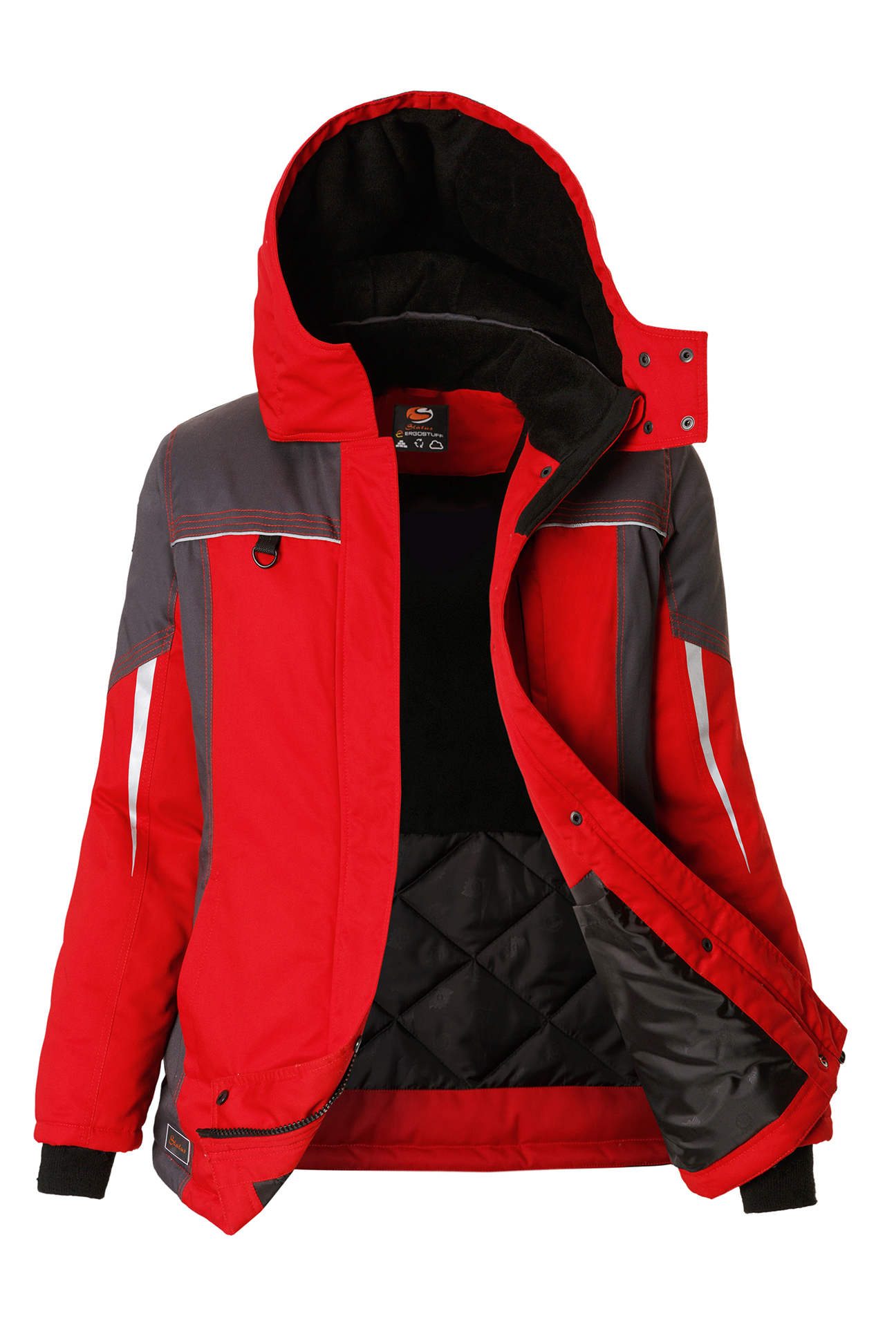 Теплопакет состоит из нескольких слоев: ткань верха ERGOstuff+, ветрозащитная ткань, утеплитель Shelter® Micro, спанбонд, ткань подкладки.