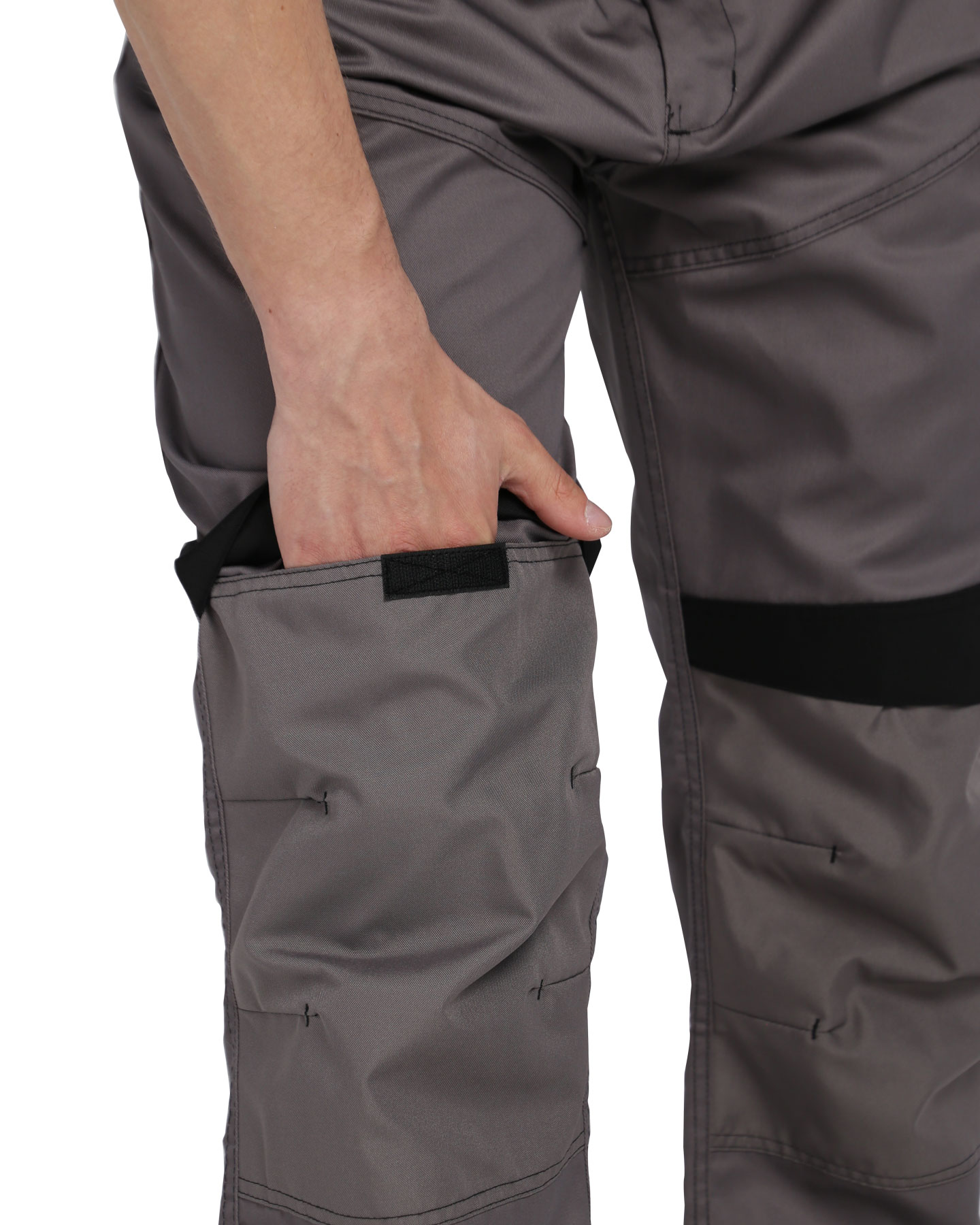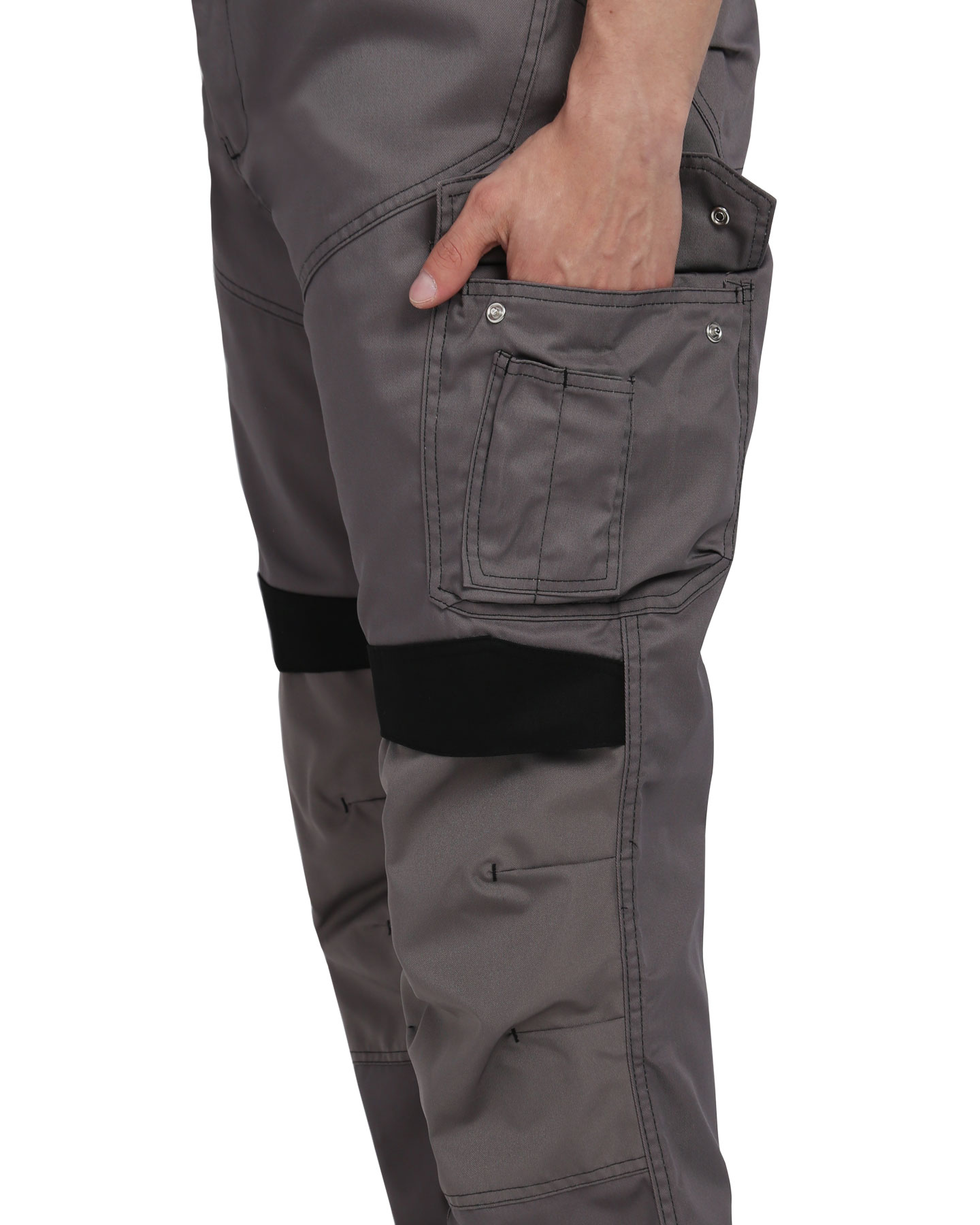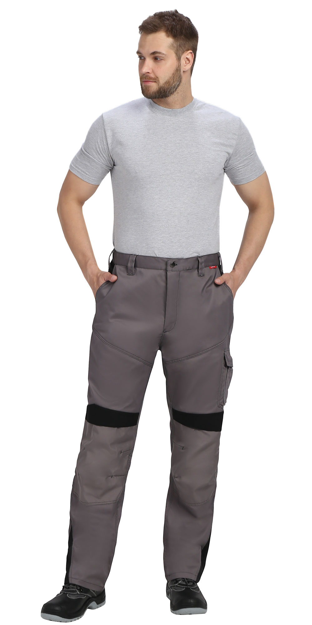 Брюки прямые с застёжкой спереди - гульфик с молнией, с отрезным поясом, с карманами спереди, сзади и на боковых швах, с объёмными наколенниками из плотной, полиэфирной, непромокаемой ткани с верхним входом для амортизационного вкладыша.