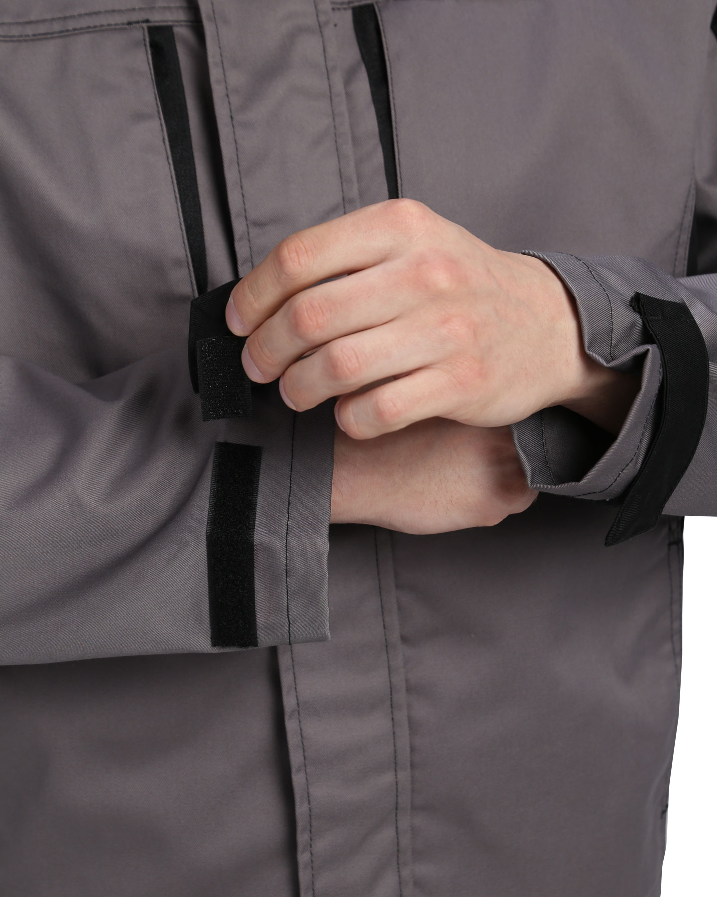 Куртка двухцветная, прямого силуэта, укороченная, с воротником стойка, с центральной застёжкой на молнию от края воротника до низа, накрытую ветрозащитной планкой и внутренней короткой планкой по правому борту, с нагрудными карманами с молнией, с нижними карманами в шве. Рукава втачные, объём по низу рукава регулируется хлястиком с текстильной застёжкой «липучка». В куртке предусмотрен СВ кант.