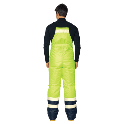 Полукомбинезон: прямого силуэта, с притачной утеплённой подкладкой, с центральной застёжкой на двухзамковую молнию, закрытую планкой. По линии талии настрочена эластичная лента. Бретели со стороны спинки частично с открытой эластичной лентой, с застёжкой спереди на фастекс.