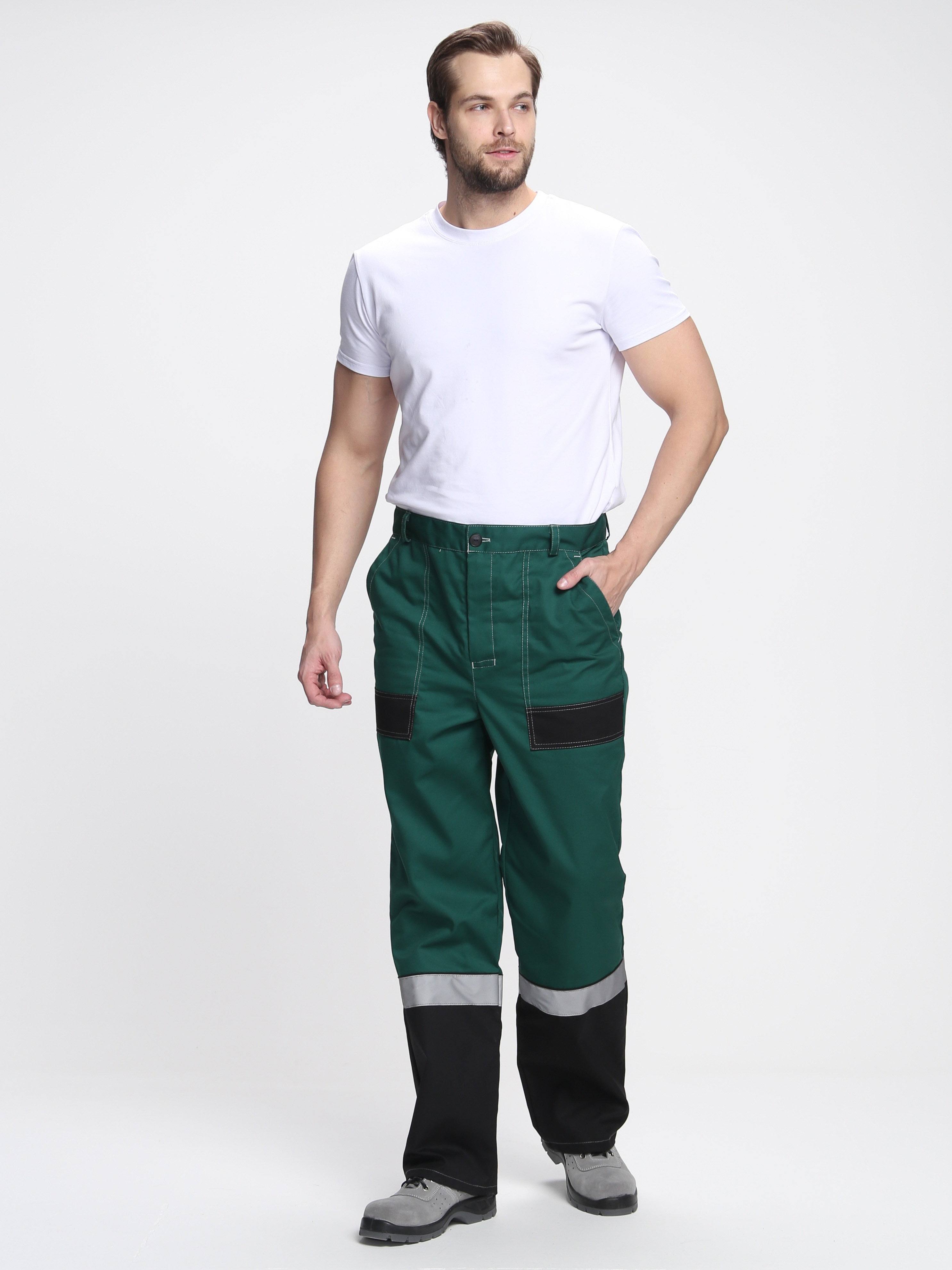 - по кокеткам, полочкам, спинке, рукавам и брючинам расположены световозвращающие полосы, что позволяет использовать костюм в условиях плохой видимости