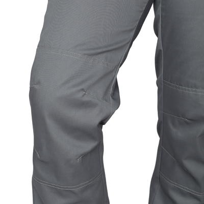 Брюки: прямого силуэта, с центральной застёжкой-молнией. На поясе 5 шлёвок для ремня. Объём по линии талии регулируется эластичной лентой в поясе по боковым швам. На коленях анатомические вытачками.