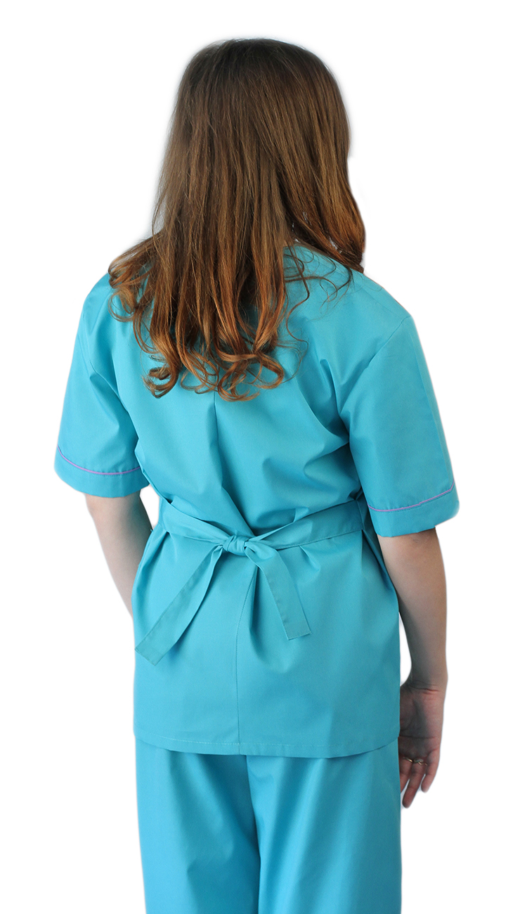 Блуза с застежкой на молнию, V-образным вырезом горловины, накладными карманами. Рукав короткий. Брюки на резинке.
