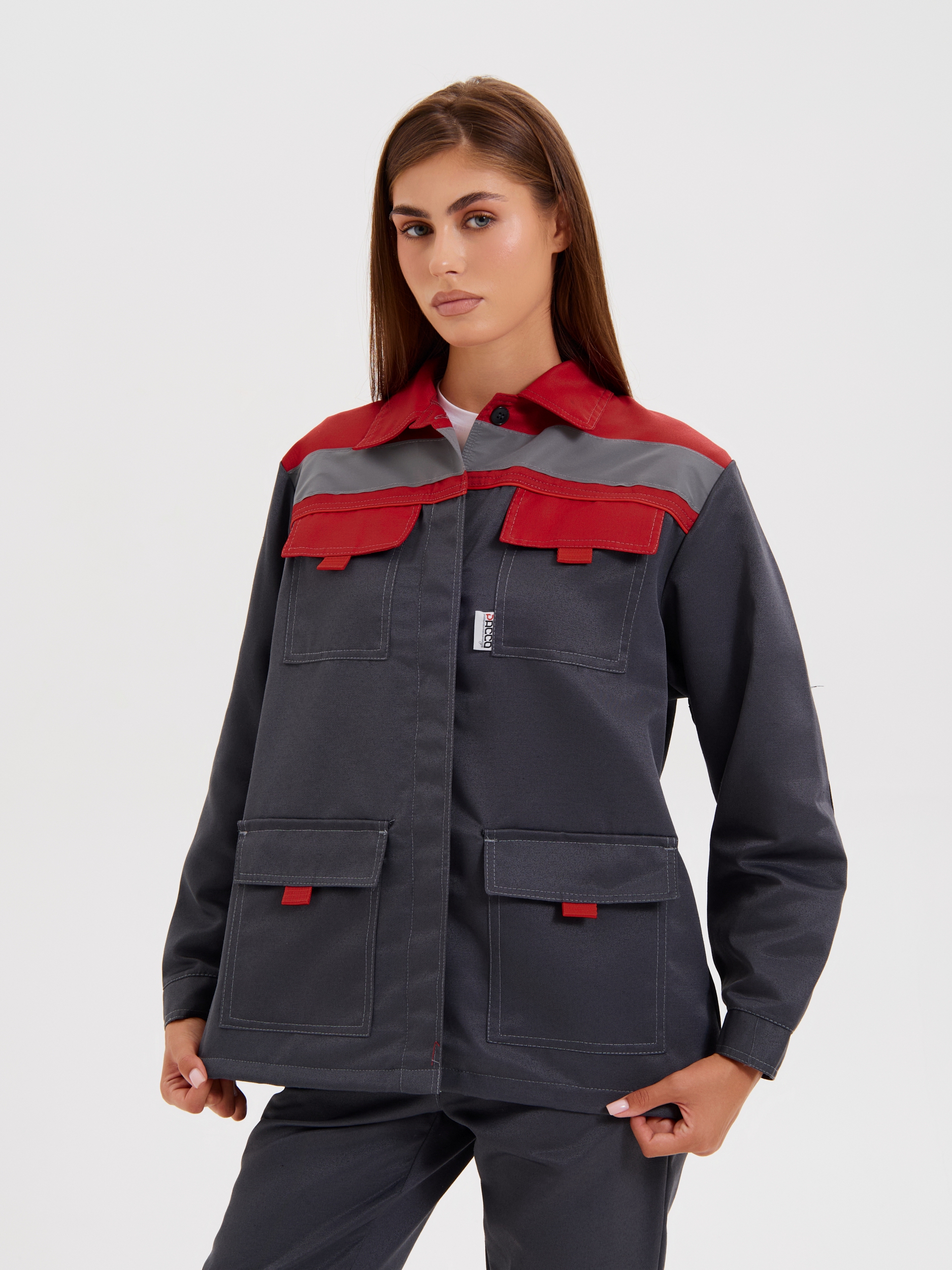 Костюм женский "Нова" КУРТКА+БРЮКИ, цв. т.сер/красный