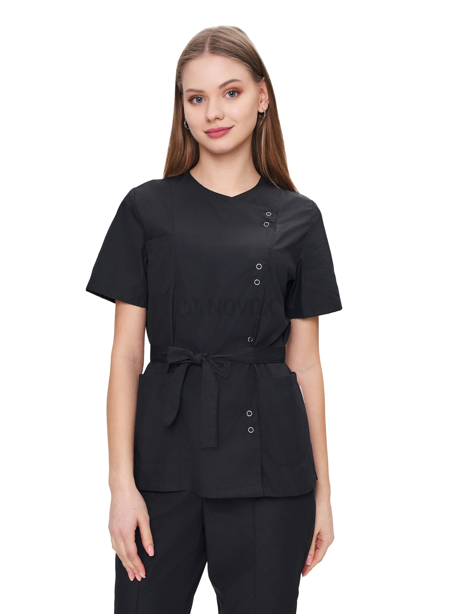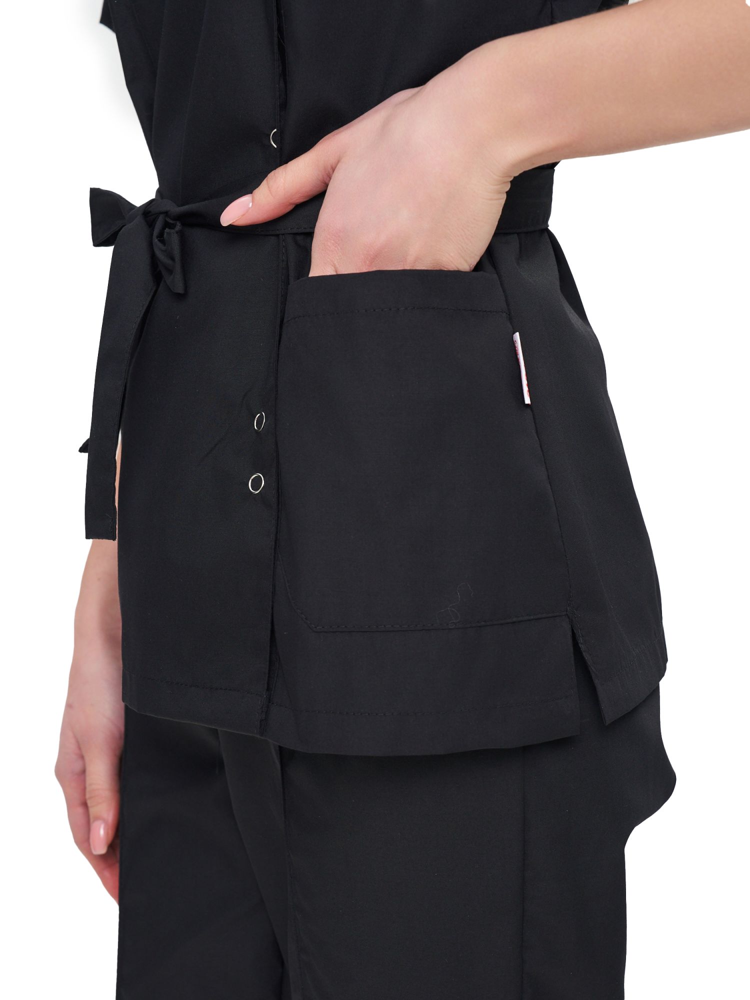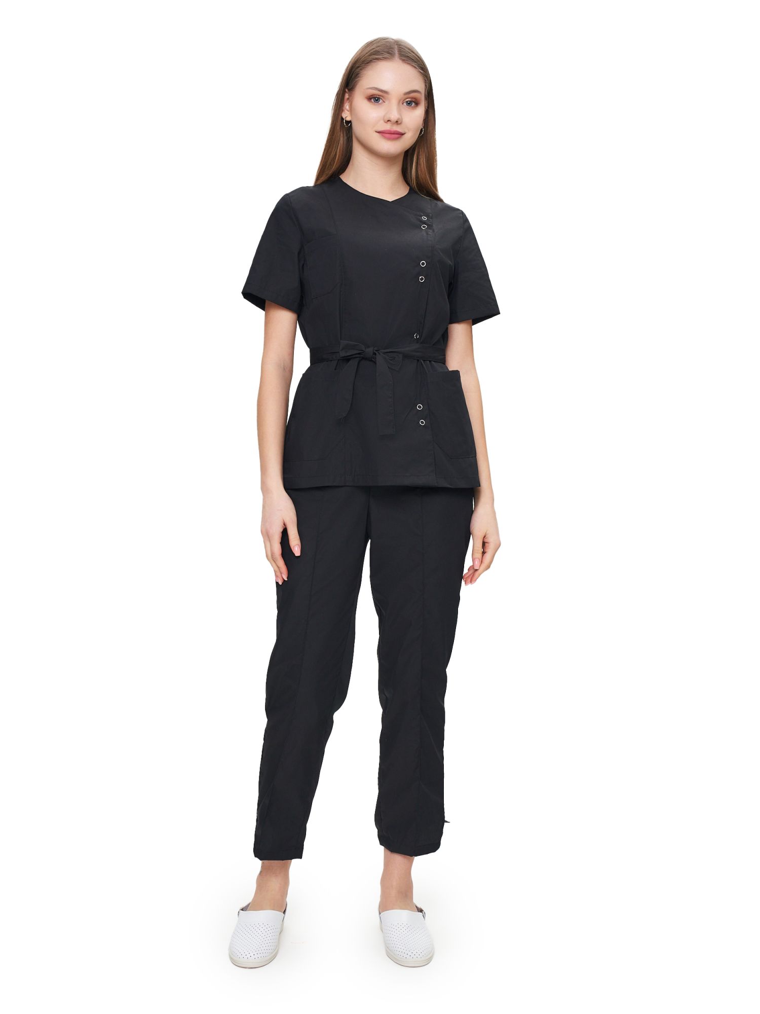 Современный, стильный, легкий и удобный женский костюм со свободной посадкой, рекомендован для сферы косметологии и работников медицинских учреждений из высококачественной смесовой ткани прекрасно переносят многократные стирки и выглядят презентабельно даже при длительных сроках эксплуатации. Широкий размерный ряд продукции позволит без труда подобрать костюм правильно по фигуре, в соответствии со спецификой профессии и с учетом индивидуальных требований сотрудника. Костюм женский «Юмелия» для косметологов и медработников прост в уходе, не мнется и быстро сохнет, а материал долгое время сохранит свой первоначальный яркий цвет. Костюм состоит из блузы и брюк приятного черного цвета. Сегодня современная мода вмешивается не только в подиумные и уличные образы. Она диктует свои правила разным сферам жизни, в том числе в сфере косметологии и медицине. Костюм состоит из прочной смесовой ткани ТИСИ, отталкивающей различного рода загрязнения. Материал устойчив к пятнам и истиранию, тем самым косметологи и медработники всегда будут выглядеть опрятно и привлекательно.