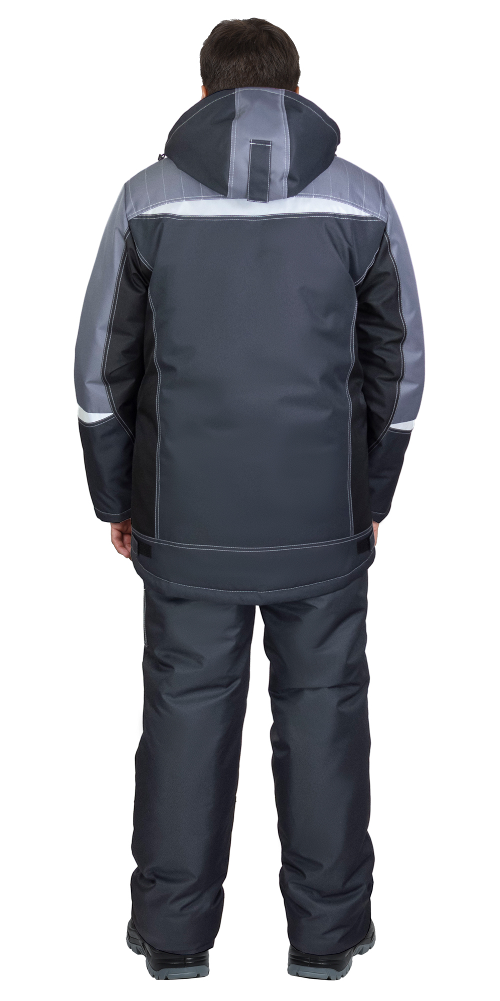 Костюм зимний "ФАВОРИТ-МЕГА-М", куртка дл., п/к, тёмно-серый с черным, средне-серой отд. и СОП